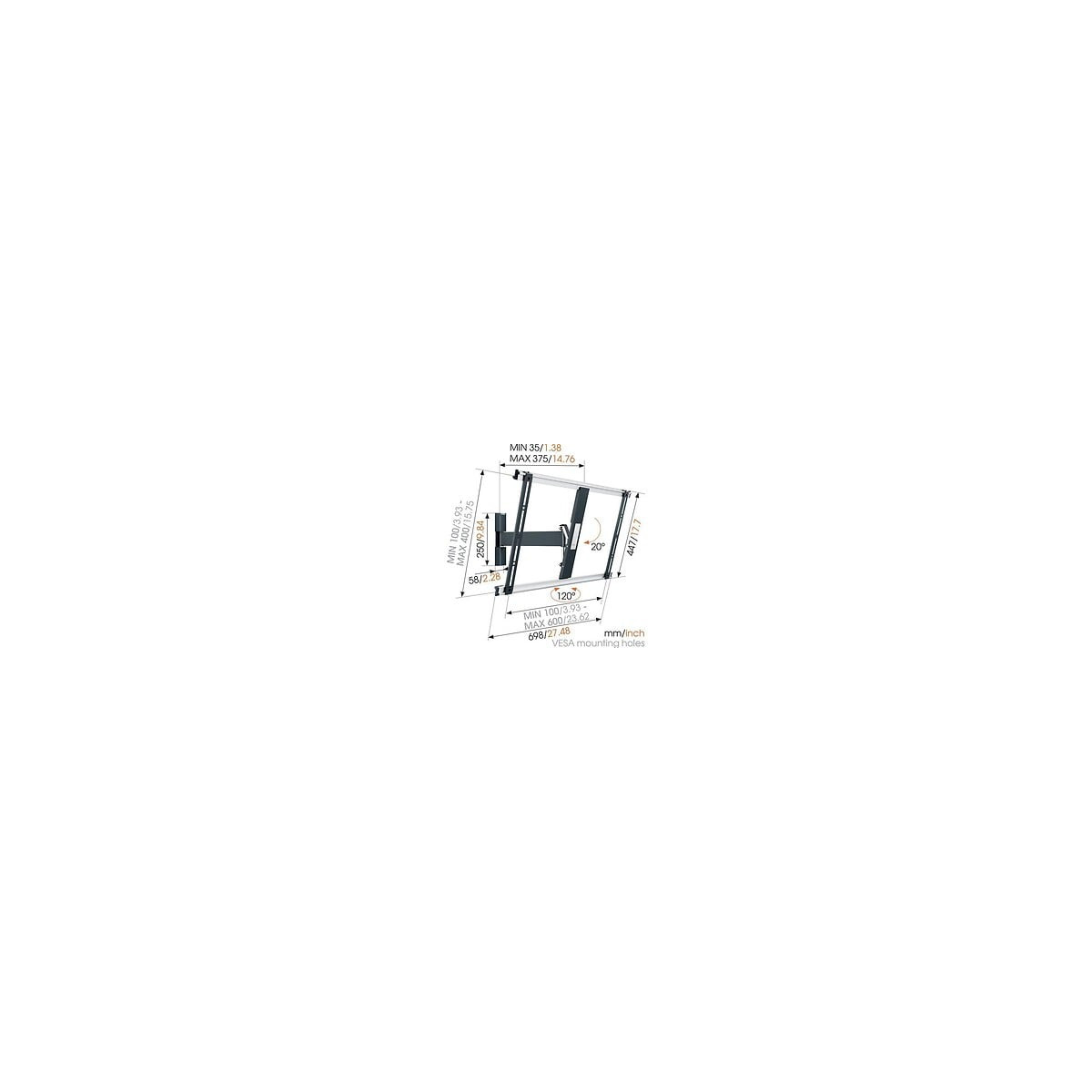 support mural 40 - 65 '' / 102 - 165 cm fonction : turn 120° vesa : 600 de la marque vogel's. en achetant ce produit, vous profiterez d'une garantie de 2 ans !