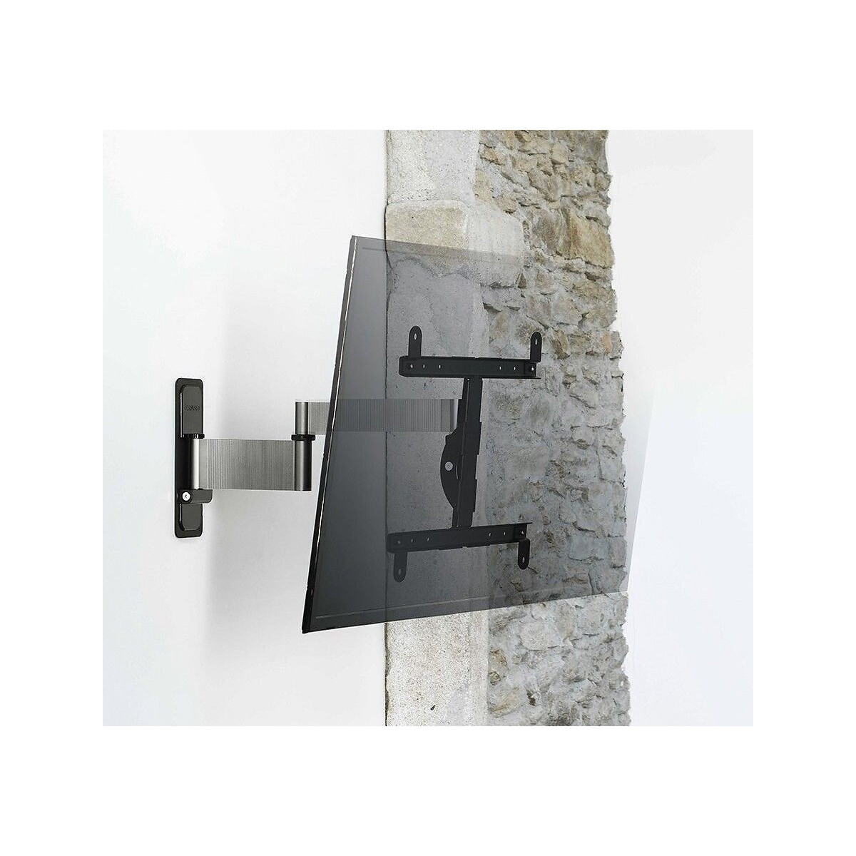 Accessoires fournis : Visserie Compatibilité : Ecrans plats Couleur : Noir Divers : Déport 325 mm, 1 bras, Système breveté de rondelles excentriques pour corriger les erreurs de perçage Gamme : Exo Inclinaison (°) : -25 Matière : Aluminium + acier, Finition aluminium texturé anodisé couleur titane + acier peinture époxy noire Norme VESA : Jusqu'à 200 x 600 mm Orientation (°) : 140 Poids maximum supporté (kg) : 35 Taille d'écran (pouces) : 40 Taille écran (cm) : De 102 à 190 cm Taille Minimum de L'Ecran : 75 Type : Meubles TV Type de support : Support orientable / inclinable VESA max (en mm) : 200 x 600