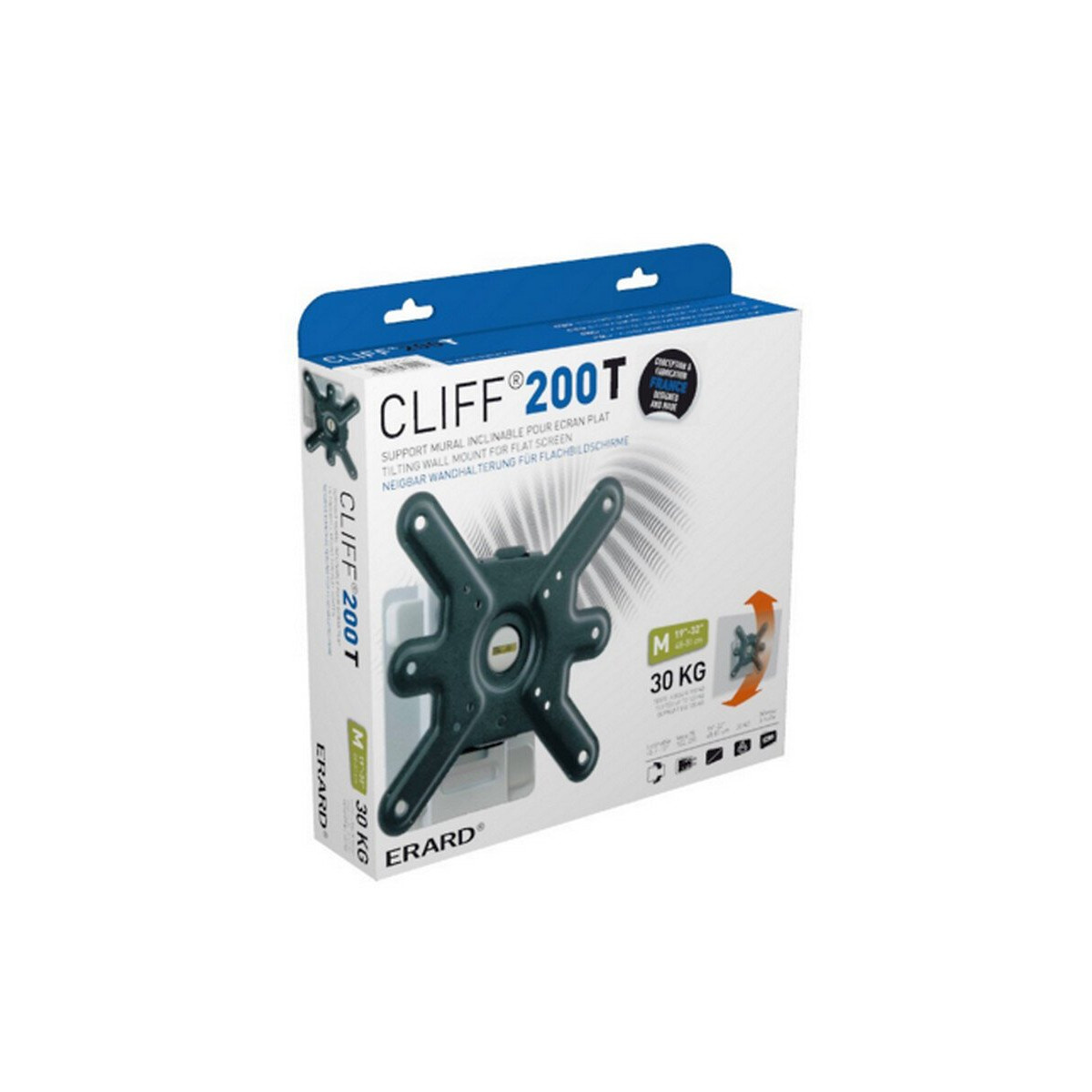 Compatibilité : Ecrans LCD, LED Gamme : CLIFF 200 Inclinaison (°) : +5/-15° Norme VESA : 75 x 75, 100 x 100 et 200 x 200 mm Origine France Garantie : Oui Poids maximum supporté (kg) : 30 Profondeur (cm) : 7.1 Taille écran (cm) : De 48 à 81 cm Taille Maximum de L'Ecran : 32 Taille Minimum de L'Ecran : 19 Type de support : Support mural VESA max (en mm) : 200 x 200
