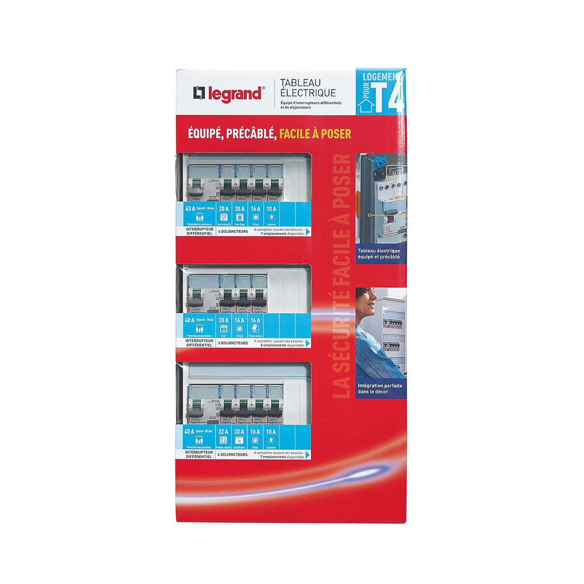 Tableau électrique équipé DRIVIA - spécial pour logement T4. Tableau prêt à poser pour un logement de type T4.Spécifications techniques