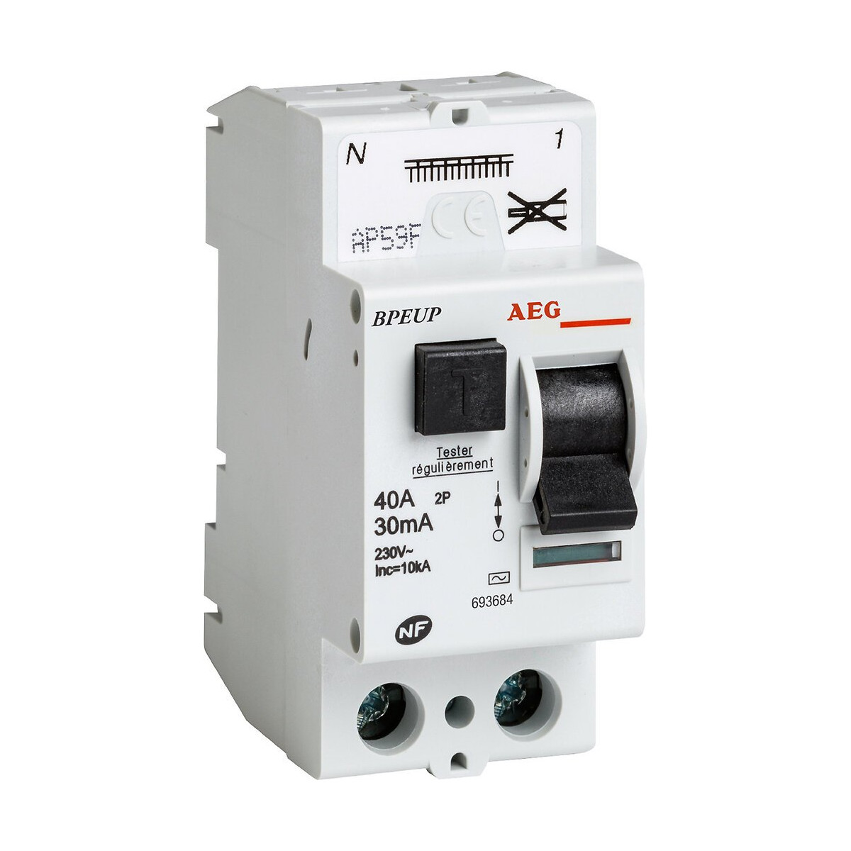 Cet interrupteur différentiel RCD 40A 30mA de type AC dispose de connexions automatiques. Norme NF EN 610006.Spécifications techniques