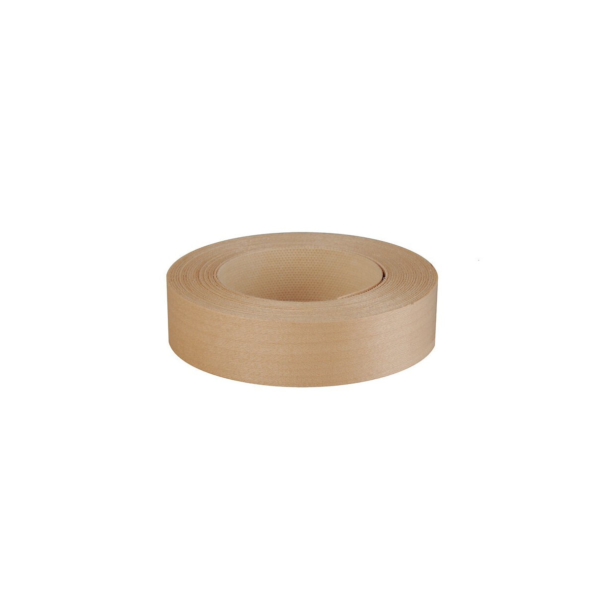 Bande de chant. Pour la finition des bordures de panneau ou tablette. Bois véritable. Peut-être verni ou teinté. Ajustable à l'épaisseur de la tablette avec 1 araseur (vendu séparément). Collage à chaud avec 1 simple fer à repasser.