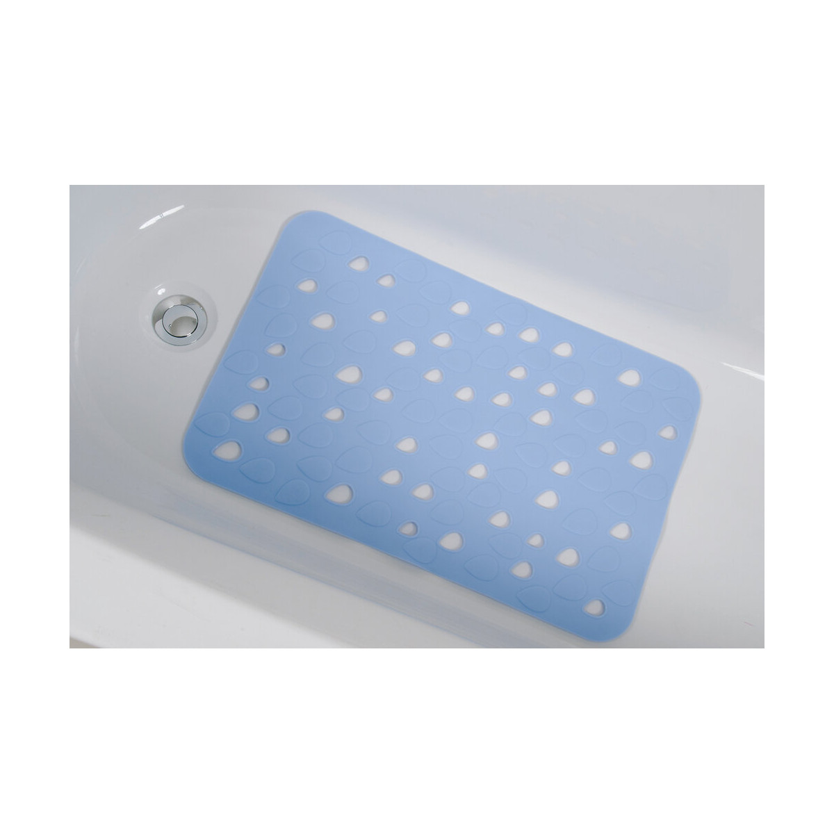 Tapis de sécurité antidérapant à ventouses pour baignoire. Caractéristiques : Longueur 53 cm Largeur 35 cm Matière 100% PVC Coloris bleu Lavable aussi en machine à 30°C Garantie 2 ans sous réserve du respect des conditions d'entretiens précisées sur le produit. Conseils d'utilisation : il suffit d'humidifier le fond de la baignoire propre avec de l'eau claire et presser toutes les ventouses. A rincer ensuite après chaque usage et suspendre pour sécher. Plus produit : Traité antibactérien avec la fonction hygiénique Sanitized ®