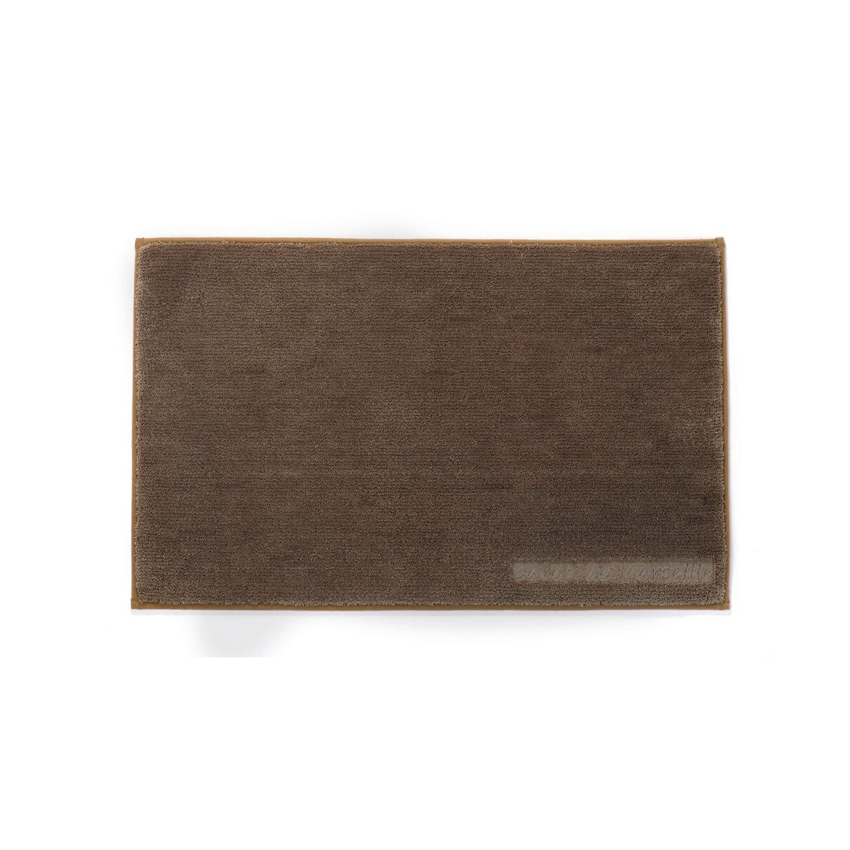 Tapis de bain Sormiou en polyester. Coloris taupe. Décor marque déposée "Savon de Marseille". Lavable en machine à 40°C en cycle modéré sans essorage. Dimensions : Largeur 50cmxLongueur 80cm.Spécifications techniques