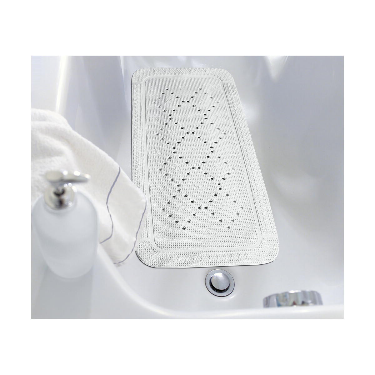 Tapis de sécurité antidérapant Sibérien pour baignoire en mousse PVC. Coloris blanc. Fixation par ventouses sur le fond de baignoire. Utilisation confortable avec excellente évacuation de l'eau. Lavable en machine à 30°C en cycle délicat sans essorage. Dimensions : Largeur 36 cm x Longueur 71 cm.