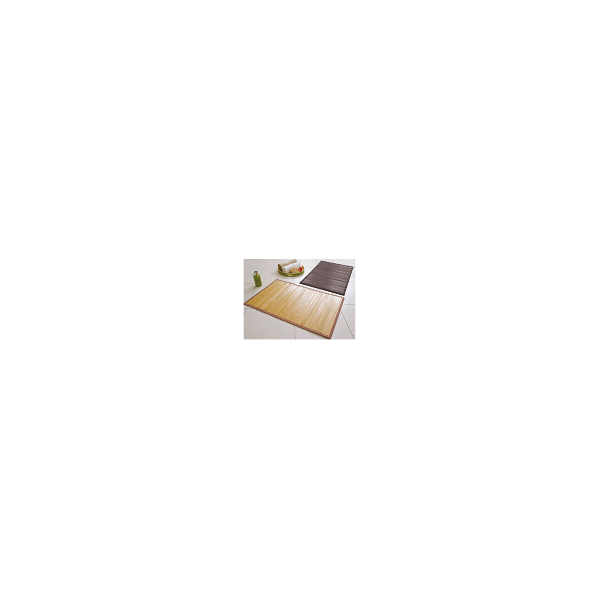 Tapis Yalong en petites lamelles de bambou teintées. Coloris beige. Dos en textile intissé. Largeur 50cm. Longueur 80cm.Spécifications techniques