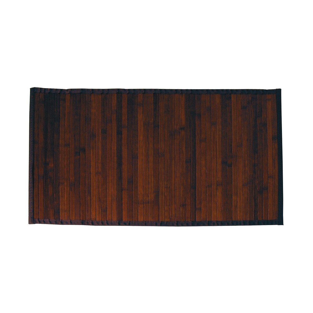 Tapis Yalong en petites lamelles de bambou teintées. Coloris marron. Dos en textile intissé. Dimensions : Largeur 50cmxLongueur 80cm.Spécifications techniques