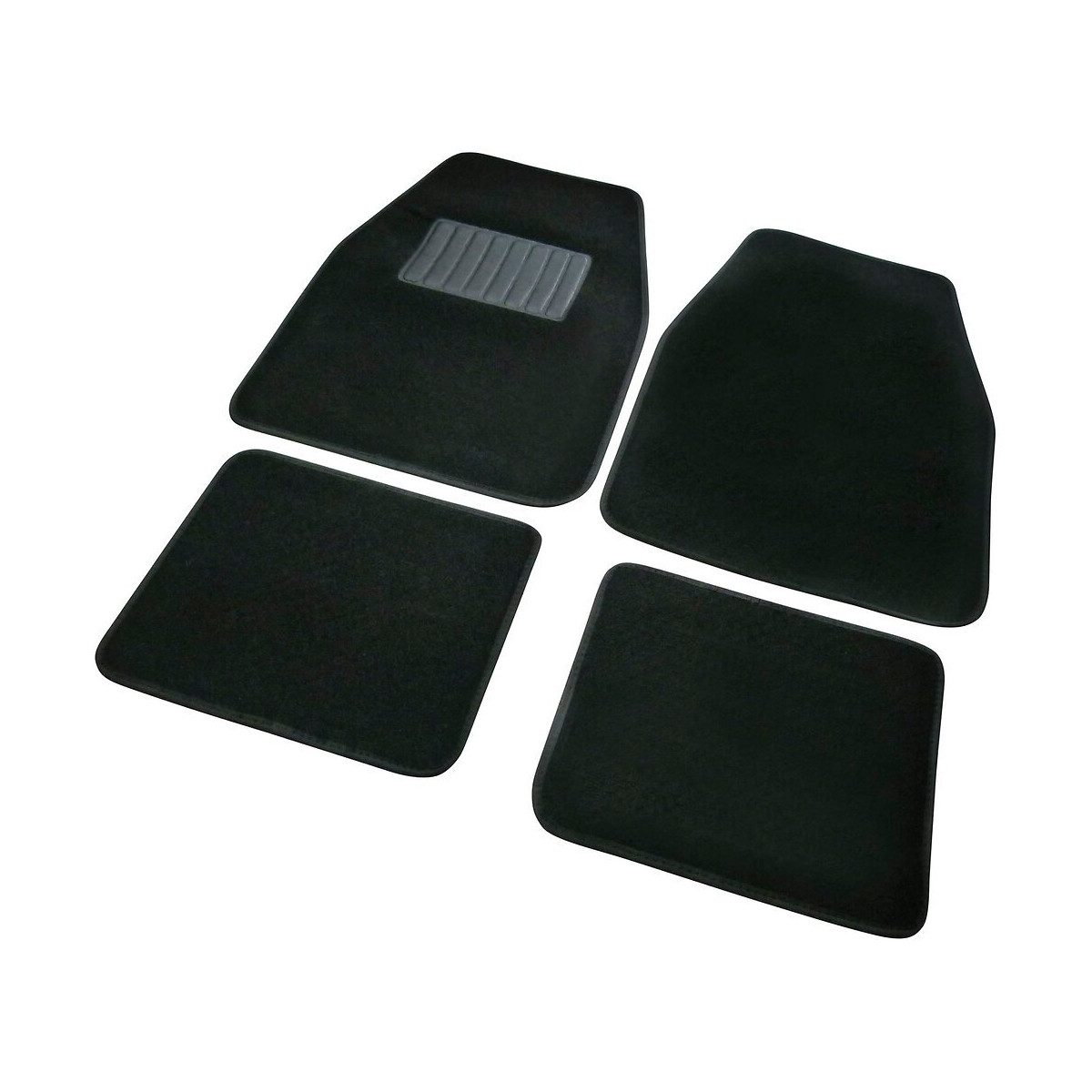 Ces 4 tapis protègent votre moquette d'origine. Talonnette en PVC renforcée pour plus de confort sur le tapis conducteur. Matière moquette noire 100% polypropylène 400g/m². Dimensions : avant 65x46 cm, arrière : 39x33 cm.