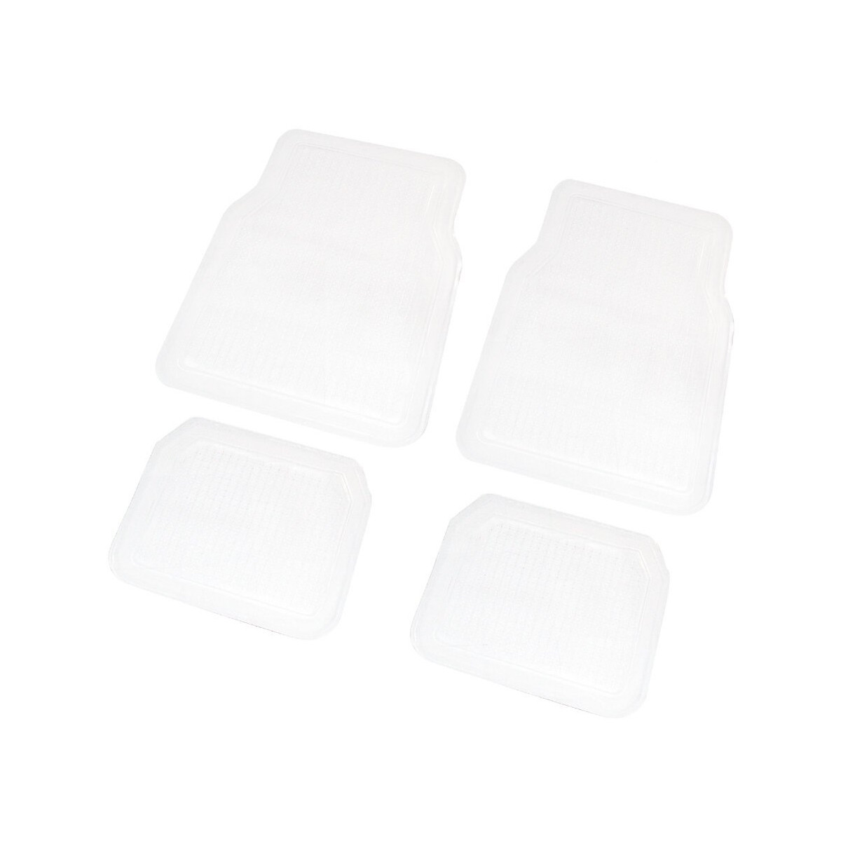 Tapis antidérapants protègent la moquette d'origine de votre voiture. Résistants et très discrets, ils sont lavables et se découpent pour plus de facilité d'adaptation à votre véhicule. Matière PVC transparent. Dimensions avant : 63x44 cm, arrière 43x33 cm.