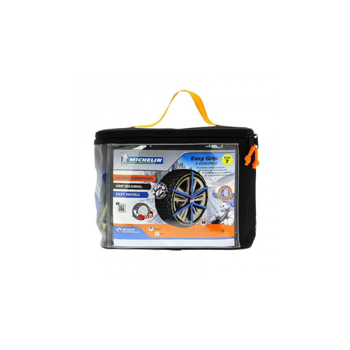 Filet composite ultra performant et très endurant nouvelle génération EVOLUTION 15 au montage et démontage ultra rapide. Montage de la chaine comme une chaussette sur un pneu. Tension automatique. Adhérence maximale y compris sur neige dure et glace, sans vibrations dans le volant. Excellente accroche pour un freinage performant. Chaine neige textile Michelin Easy Grip : la chaussette neige composite haute endurance à l'adhérence maximale sur neige et glace. Paire de chaînes neige pour pneus 225/60R18 235/65R17 Filet en matériau composite continu sur la bande de roulement du pneu. Comprend 2 chaines neige Easy Grip EVOLUTION 15 pour équiper 2 roues. Adhérence maximale sur toute type de neige grâce aux anneaux en acier assurant une liaison au sol sur la glace ou le verglas notamment. Montage de la chaussette neige sur le pneu simplifiée avec un mode de fermeture extensible performant. Tension et centrage de la chaine neige automatique sur le pneu après roulage. 6 sangles en partie centrale de la chaine évite l'échappement vers l'intérieur de la roue. Equipé d'un système réfléchissant Night Vision Security permettant la visibilité du dispositif de nuit. Notice de pose détaillée de votre chaine neige Michelin Easy Grip incluse. A monter sur les roues motrices des véhicules chainables uniquement (voir le Livret de Bord du véhicule). Les 4 roues motrices type 4x4 seront équipés préférentiellement de 4 chaines à neige textile Michelin (obligatoires pour les Camping Car, même 2 roues motrices). Vitesse limitée à 40 km/h équipements montés sur les pneus. Dimensions de pneus correspondant à ces chaines à neige composite : 225/60R18 235/60R18 - 235/65R17 Montage: Notice de pose des chaines à neige Michelin Easygrip Textile fournie Tension: Automatique Matériau: Composite aramide - polyamide - polyuréthane Type de montage: Montage filet Michelin Chaines neige homologuées: Conforme à la réglementation B26 (article R60 du Code de la Route) . Non compatibles avec Véhicules NON chaînables. Chaines neige homologuées: Conforme à la réglementation B26 (article R60 du Code de la Route) Certification - Réponse aux normes: UTAC France XP R-12-781 à 40 km/h / TI BFH-12-D1B1 / V5121 GEPRÜFT 2009121 Restrictions d'usage: Ne convient pas pour TOUS véhicules déclarés NON chainables par votre Constructeur automobile. Type de démontage: Automatique Encombrement côté intérieur de la roue: 6 mm Dimensions de Pneu compatibles avec cette chaîne à neige: 225/60R18 Dimensions de Pneu compatibles avec cette chaîne à neige: 235/65R17 Dimensions de Pneu compatibles avec cette chaîne à neige: 235/65R17,225/60R18,235/60R18 Dimensions de Pneu compatibles avec cette chaîne à neige: 235/60R18 Marque Chaine neige: Michelin Garantie: 2 ans Type véhicule: 4x4 - 4 roues motrices,Camping Car,Véhicule Utilitaire,Véhicule Tourisme,Suv - Monospace Compatible avec les véhicules non chainables: Non Encombrement sur bande de roulement du pneu: 9 mm Niveau de Sécurité de la chaine neige: 4 étoiles Conditionnement: Sacoche nylon sur-emballé comprenant 2 chaines neige textile Michelin Easygrip EVO.