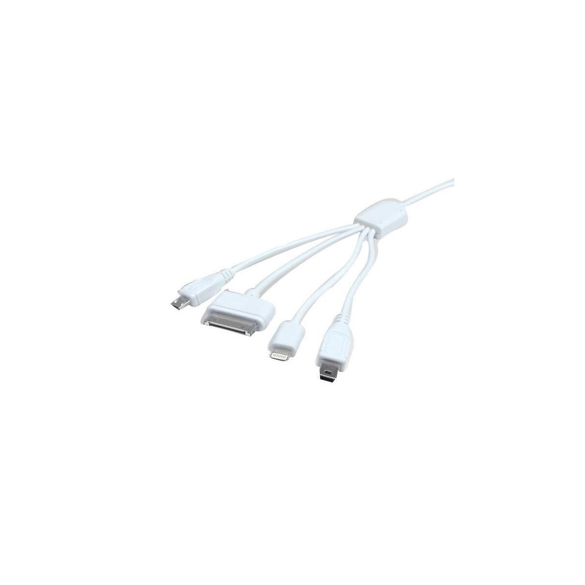 Chargeur USB universel 4 adaptateurs - Micro USB - Mini USB - Iphone 4 - Iphone 5 - Longueur : 37 cm - Blanc