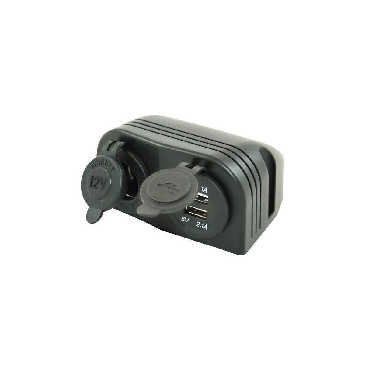 Permet d'alimenter vos accessoires 12 Volts et de recharger vos appareils électroniques (tablettes, téléphones ...) - 1 prise 12 Volts - 2 prises USB 1 Amp - et 2,1 A
