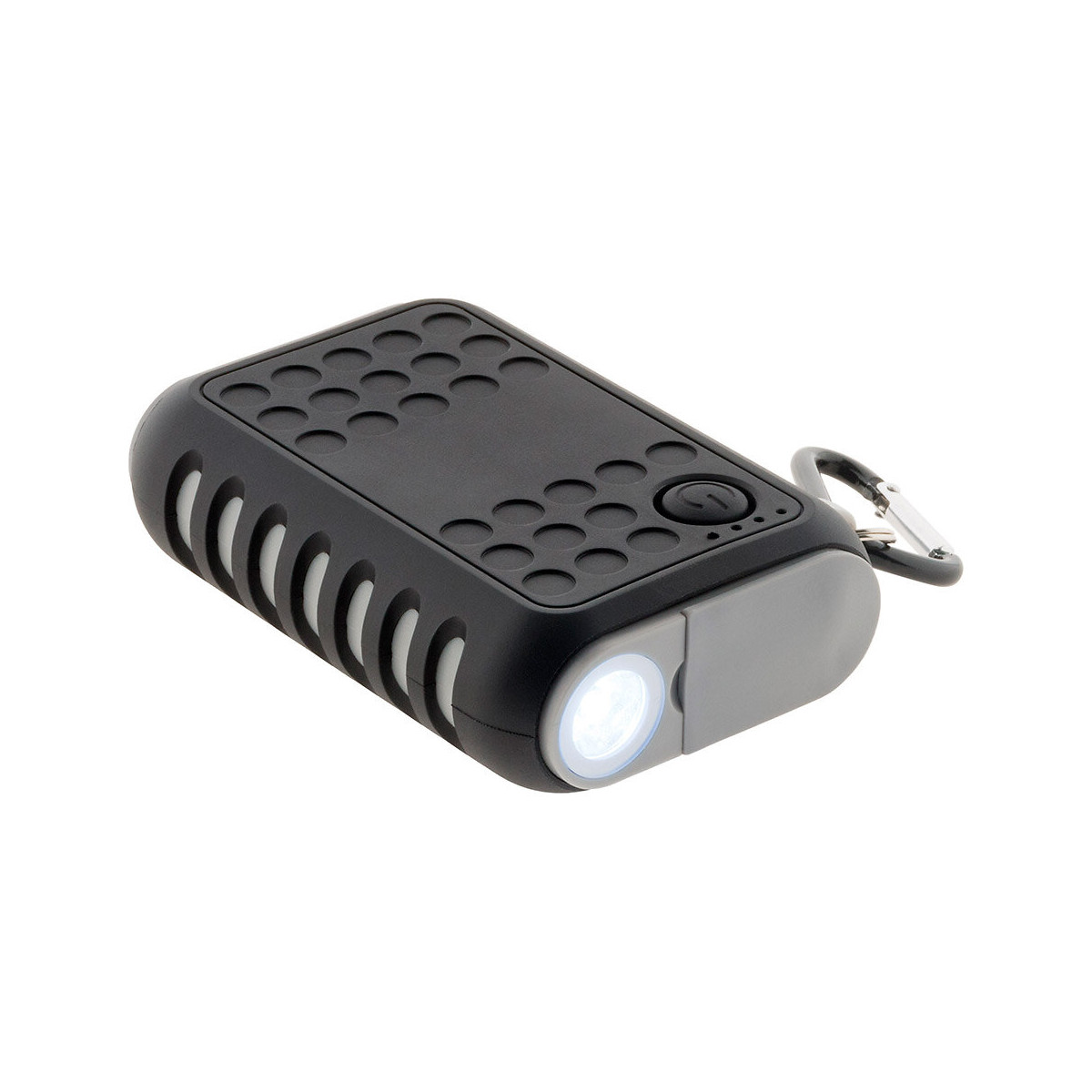 Ce chargeur de secours 7500mAh est conçu pour résister aux chocs et aux projections d?eau. C?est l?accessoire indispensable pour recharger vos appareils nomades pendant vos déplacements à l?extérieur (chantier, camping, plage?). Grâce à sa finition caoutchouc, il est robuste et solide et résiste aux conditions les plus difficiles (choc, poussière, boue, neige?). Très ergonomique, il offre une bonne prise en main même en cas d'humidité. L?accès au port USB est protégé par un opercule empêchant l?entrée de tout corps étranger. Malin et astucieux, ce power bank est également équipé d'une mini lampe torche et d'un mousqueton. Grâce à son format compact, vous pourrez l'emporter partout avec vous et le glisser dans votre poche.
