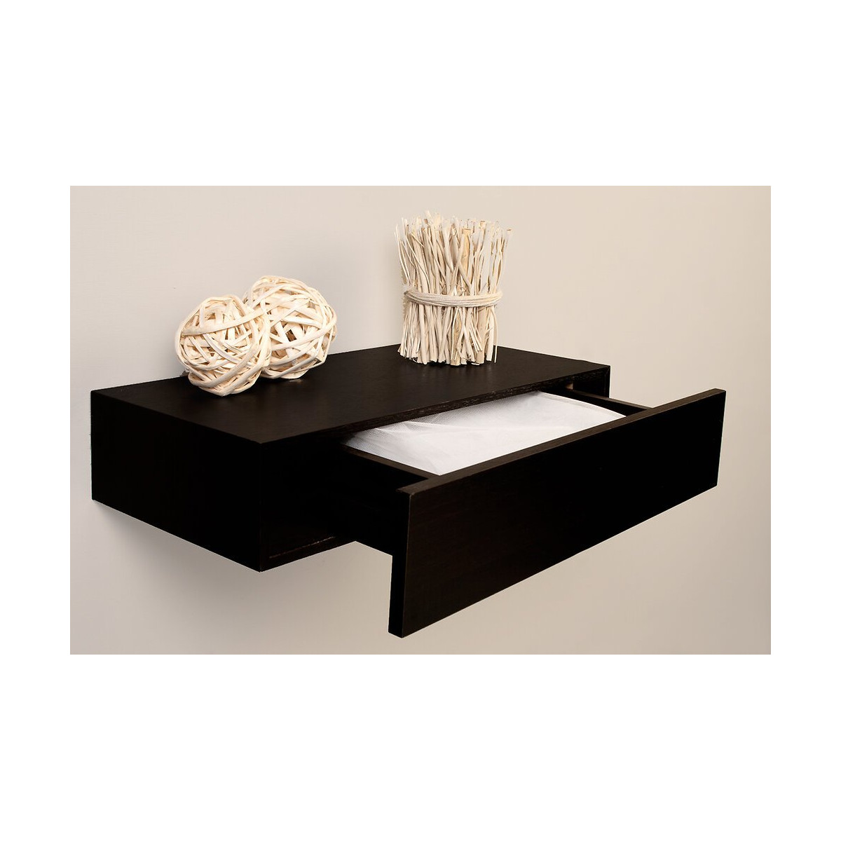 Etagère avec tiroir Home Décor. Système de fixation invisible. MDF laquée couleur noir glossy. Dimensions 48 x 25 x 10 cm. Résistance maximum 10 kg