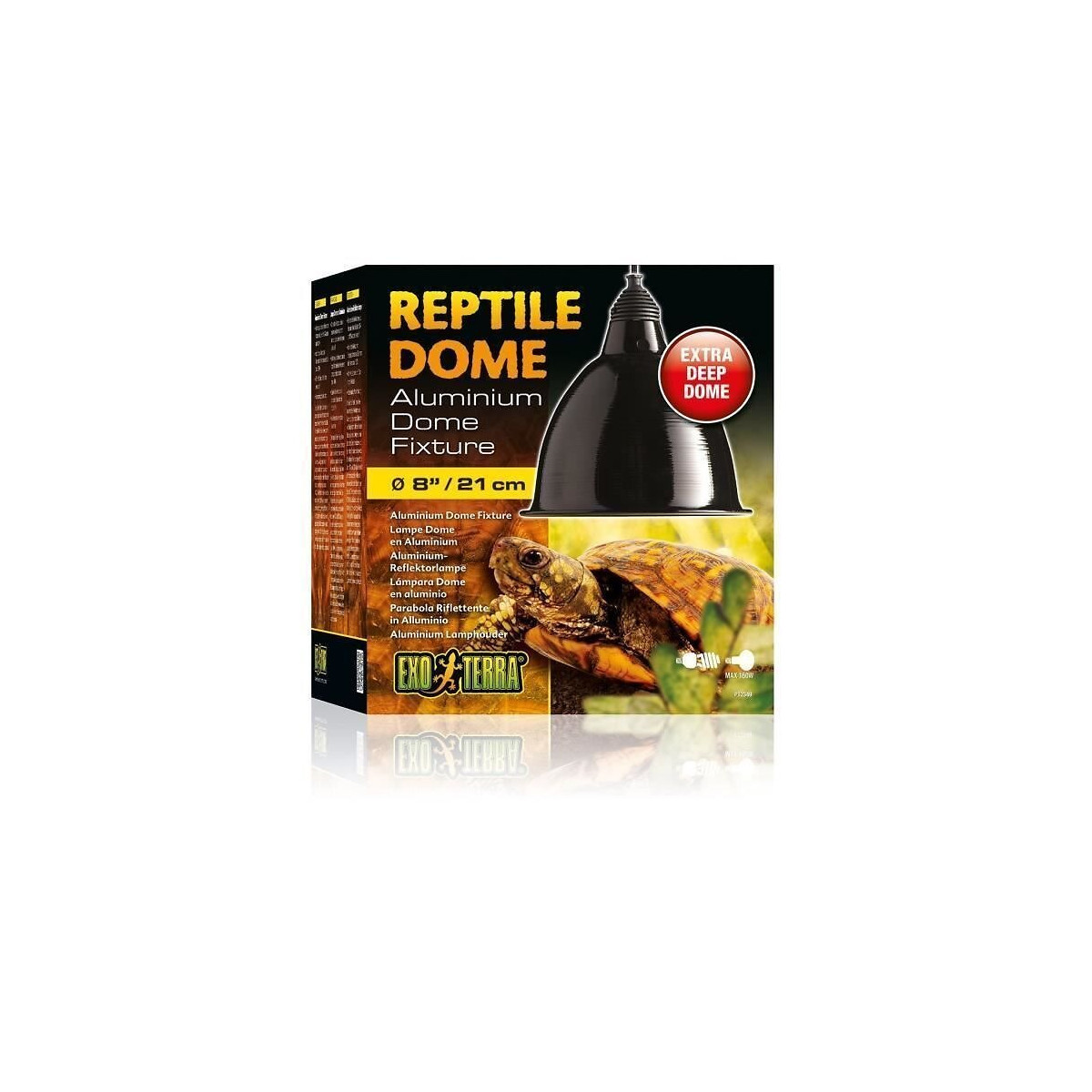Lampe Dôme taille L - Réflecteur en aluminium qui augmente considérablement l'éclairement et le rendement des rayons UVA et UVB - Convient aux ampoules fluocompactes et incandescentes de 160 W max. - Douille en céramique résistante a la chaleur - Interrupteur marche-arret, cordon d'alimentation de 180 cm (6 pi) - Pour reptiles.