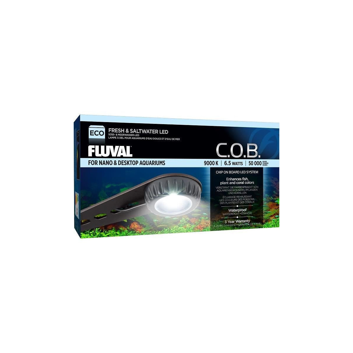 FLUVAL Appareil d'éclairage compact Nano LED - Spectre de lumiere hybride - Température de couleur de 9 000 K - Comprend également des supports de montage novateurs qui permettent un positionnement réglable - Indice d'étanchéité IP67 - Grand angle de diff