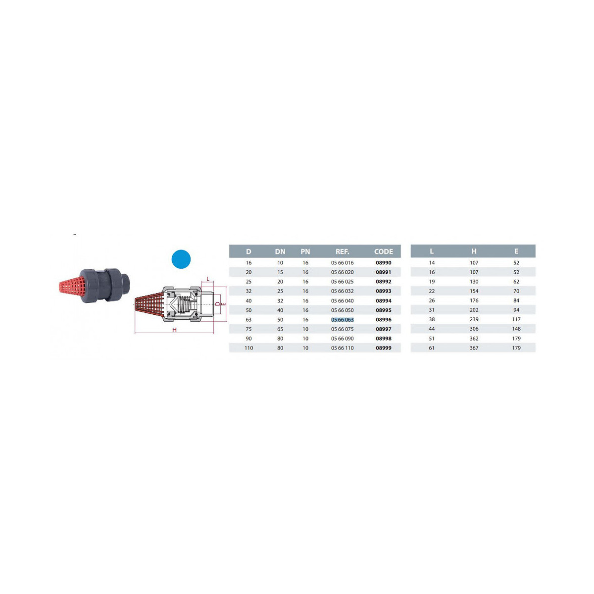 ø63 mm, Clapet crépine à ressort en PVC pression. femelle à coller. ressort du clapet en inox. ø63 mm, Clapet crépine à ressort en PVC pression. ø63 mm, Clapet crépine à ressort en PVC pression. femelle à coller. ressort du clapet en inox. ø63 mm, Clapet crépine à ressort en PVC pression. Photo non contractuelle, car il y a plusieurs vendeurs sur une même fiche produit.