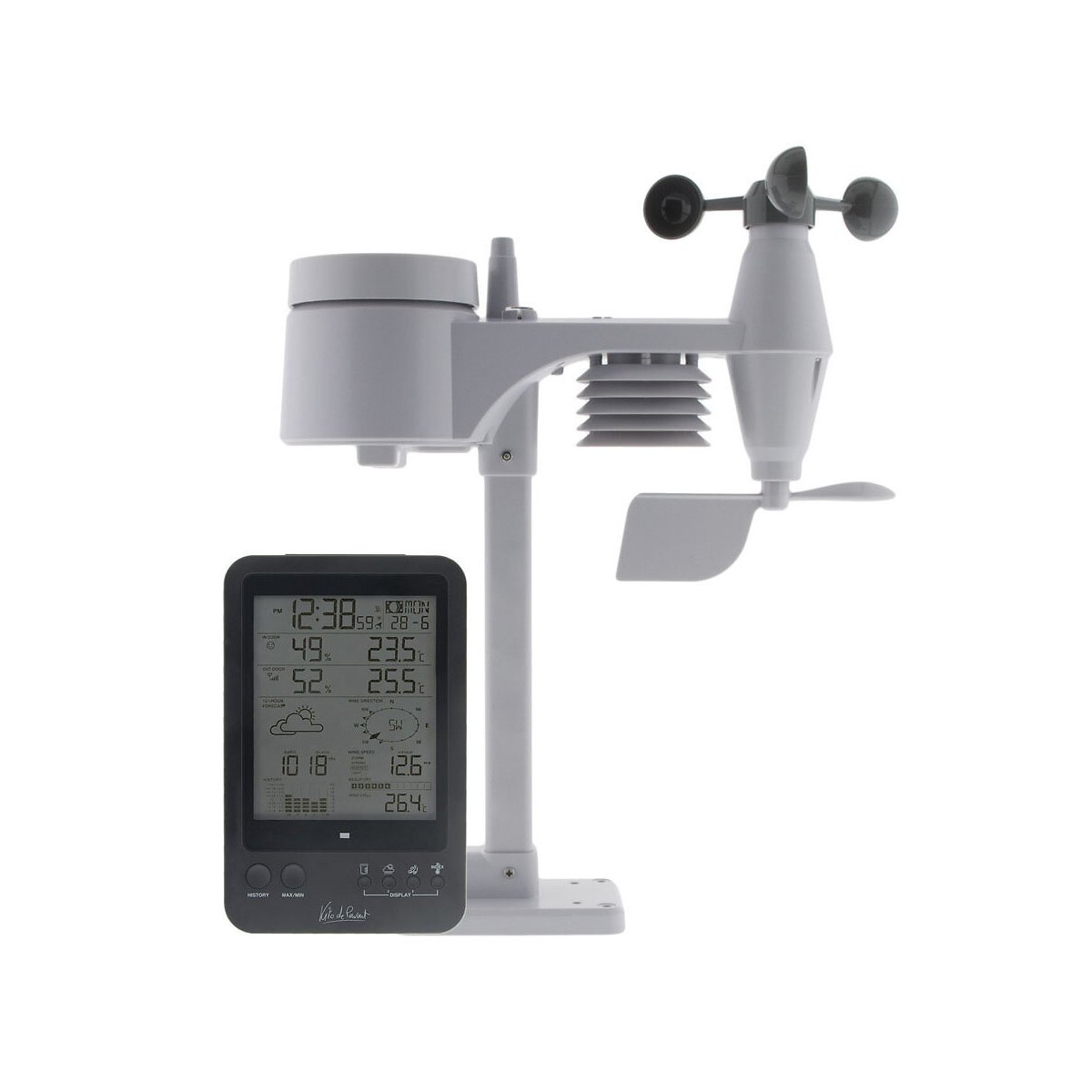 Cette centrale météo professionnelle sans fil est à l?effigie du skipper Kito de Pavant, participant au Vendée Globe 2016 sous les couleurs de la marque OTIO. Le produit est doté d?un écran intérieur de 14 cm sur lequel sont affichées aussi bien les données intérieures, telles que la température ou le taux d'humidité, que les données extérieures. En effet, le capteur extérieur permet de mesurer la vitesse et la direction du vent, la pluviométrie, la température et l?hygrométrie. De plus, la station permet de consulter les prévisions météorologiques sur les 12 prochaines heures ainsi que l'historique de ces dernières. Il est également possible d'obtenir les phases lunaires et le point de rosé. Cette station assure bien évidemment les fonctions suivantes: date, heure, réveil (avec répétition). Enfin, ce produit sans fil a une portée de 150 m en champ libre. Produit garantie 2 ans.
