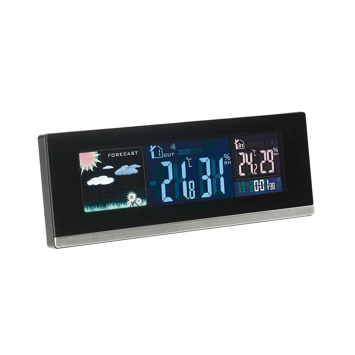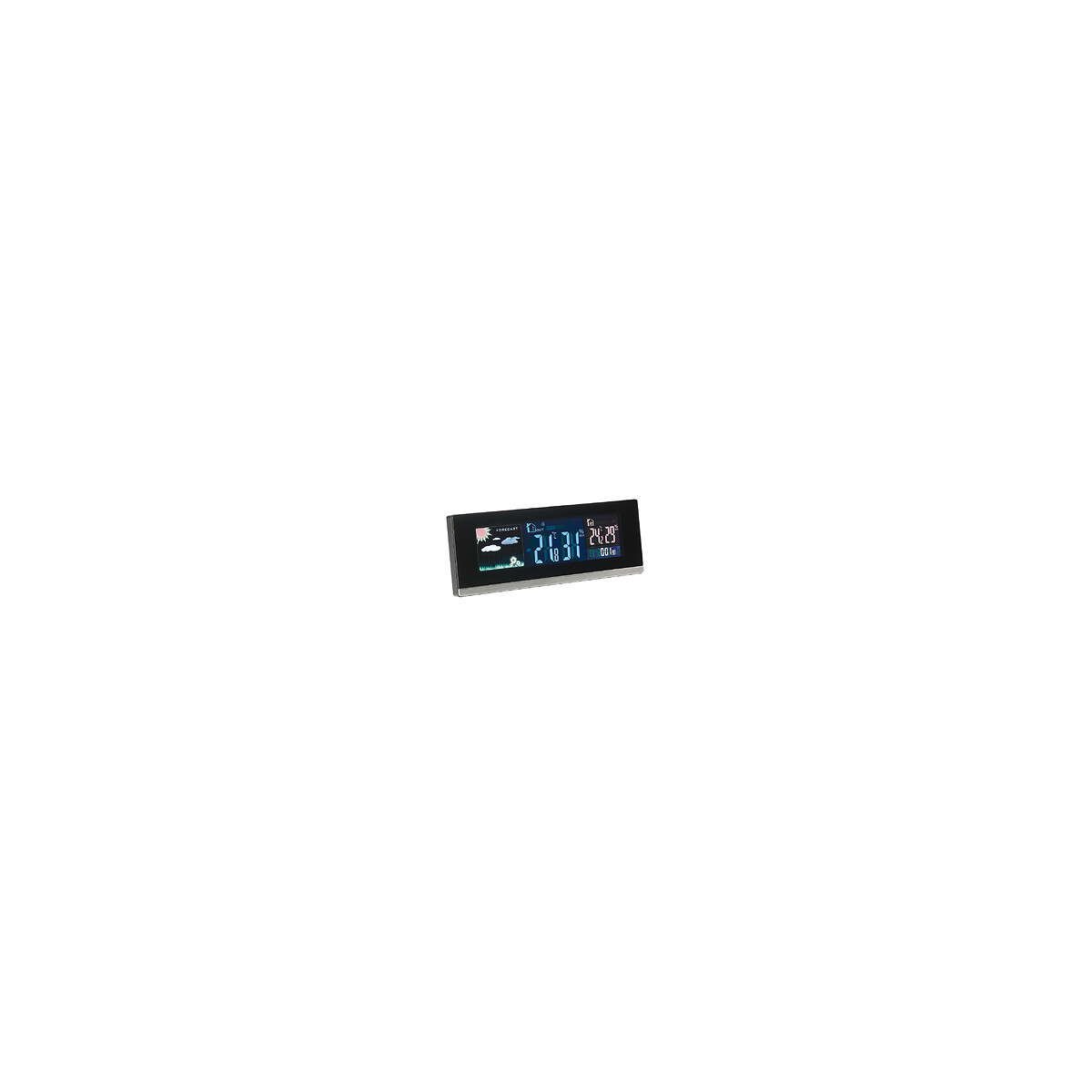 sl251 - Station météo horizontale radio-pilotée avec sonde extérieure sans fil Clipsonic SL251, thermomètre intérieur et extérieur, prévisions météorologiques par pictos, horloge, alarme, port USB pour chargement des appareils mobiles, portée de transmission jusqu?à 50 m. - Poids brut : 0.31 kg. Dimensions : 21.6 x 7.5 x 8.5 cm. Piles : oui :0% mercury-0% low cadmium. Type de pile : R6 ou AA. Nb de piles : 2. Type de piles 2 : R6 ou AA. Couleur produit : Noir. Secteur : Oui.