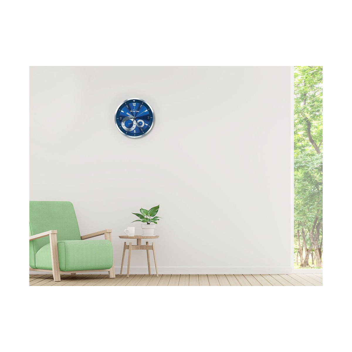La WSA01 est une est une station météo en forme d'horloge analogique multifonction qui vous fournira des informations détaillées et actualisées sur la température et l'humidité. Conçue pour être accrochée au mur, son design classique en bleu électrique, en aluminium avec façade en verre, allie élégance et efficacité. Son mouvement est réglé par un quartz et comprend un thermomètre, un hygromètre et deux cadrans argentés. Cette horloge est alimentée par 1 pile AA (non incluse), et sa taille (30Ø X 4,5 cm) et sa légèreté (1kg) font de cette horloge moderne un outil indispensable que vous pouvez utiliser et déplacer selon vos préférences.