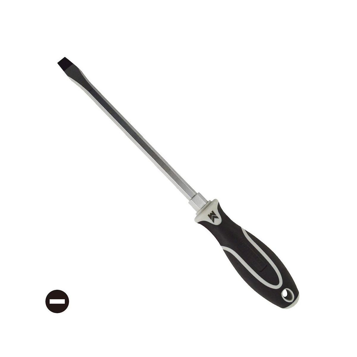 Outil essentiel de travail pour le vissage et dévissage de vos installations. Sa prise en main confortable en fait un accessoire ergonomique et simple à utiliser pour rendre vos travaux moins pénibles. Avec sa structure métallique solide, la tige de ce tournevis garantit une stabilité parfaite afin d'effectuer vos vissages en toute sécurité. Dimensions : 2 x 10 x 200 mm