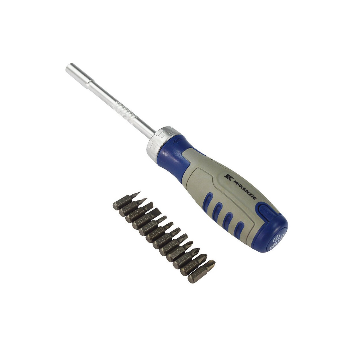 Outil indispensable pour vos travaux, ce tournevis à cliquet vous permettra d'effectuer vos vissages efficacement. Sa prise en main confortable en fait un accessoire ergonomique et simple à utiliser pour rendre vos travaux moins pénibles. Disposant d'une structure métallique solide, la tige de ce tournevis offre une stabilité parfaite afin de réaliser vos vissages de manière sécurisée. Conditionnement : accompagné de 12 embouts
