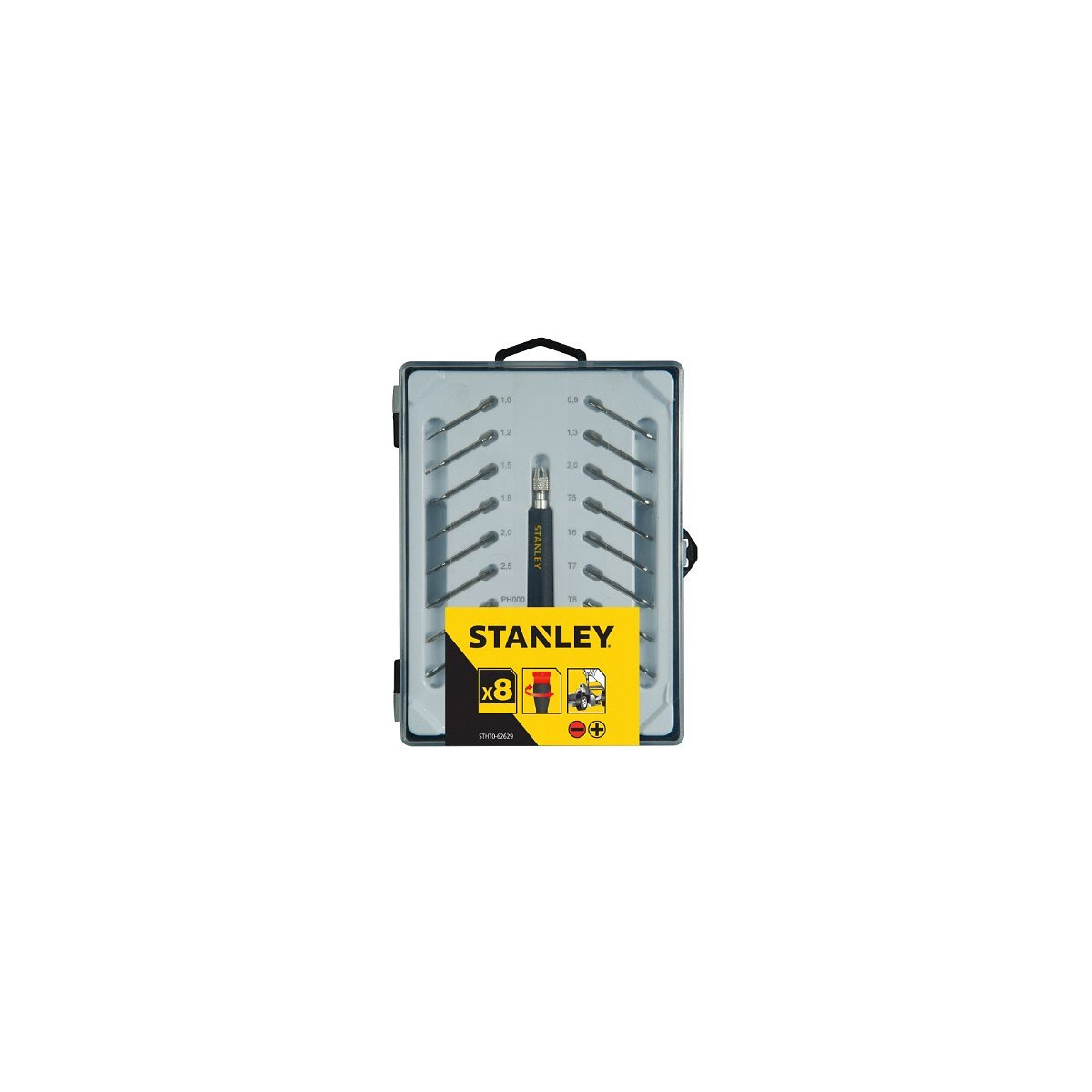 Lame en acier au chrome vanadium : grande résistance et réduit les risques de casse de la pointe et de la lame Poignée ergonomique en acétate de cellulose pour un meilleur contrôle durant le travail et plus de confort Repose doigt pivotant avec haut de la poignée alvéolée pour un meilleur maintien Marquage du type, de la taille de l'empreinte ainsi que de la longueur de la lame sur le manche - code couleur Conformes aux normes internationales : NF-E 74352, ISO 2380-1, DIN 5263, NF-E 74355, ISO 8764, DIN 5260 Jeu de 16 pcs : Fente 1,1.2,1.5,1.8,2,2.5x40mm. Phillips PH000 2x35, PH00 2.5x40mm. Hexagonal 0.9,1.3,1.5,2.4mm. Torx T5,T6,T7, T8