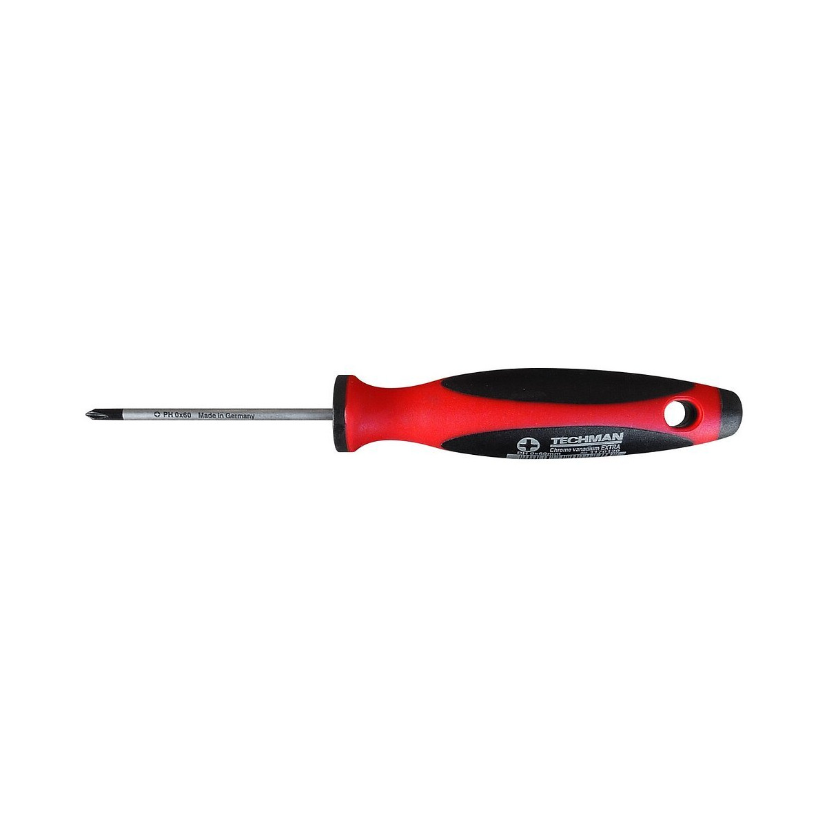 Lame 60mm. Manche 103 x 23 mm. Manche ergonomique en matériau doux antidérapant avec trou pratique pour le rangement. Forme triangulaire qui correspond parfaitement à l'angle de rotation de la main (120°), et qui empêche le tournevis de rouler lorsqu'il est posé. Lame acier inoxydable haute qualité, chromée mate. Pointe noire avec empreinte haute précision. Fabriqué en Allemagne
