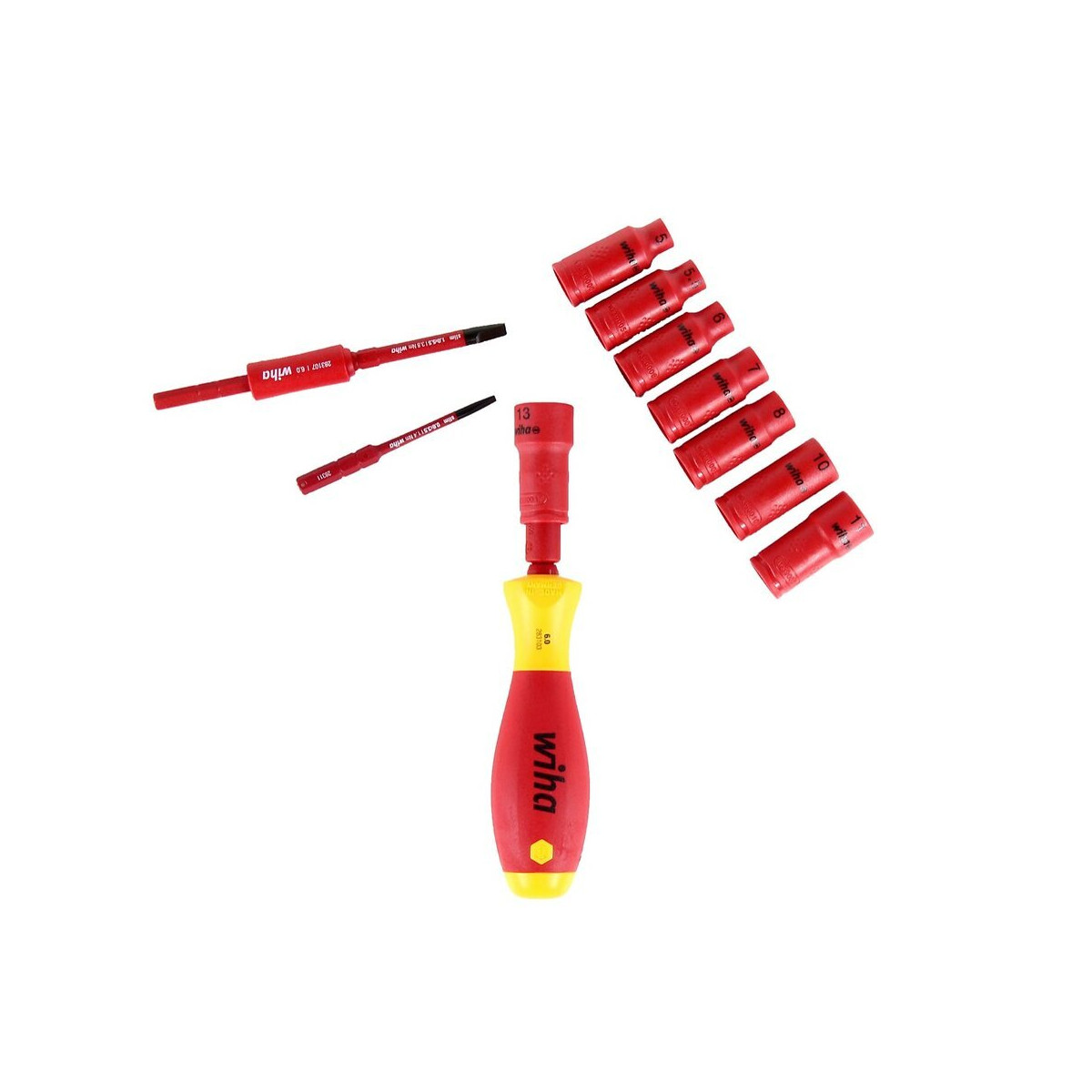 Contenu du paquet: - 1x Poignée de tournevis SoftFinish® electric - 1x Adaptateur slimVario® electric pour clé à douille 1/4 "(43139) 6 mm - 1x Fente électrique slimBit (34581) 5,5 mm x 75 mm - 1x Fente électrique slimBit (41159) 3,5 mm x 75 mm - 1x Clé à douille isolée, douille hexagonale 1/4 "(43089) 5 mm - 1x Clé à douille isolée, douille hexagonale 1/4 "(43090) 5,5 mm - 1x Clé à douille isolée, douille hexagonale 1/4 "(43091) 6 mm - 1x Clé à douille isolée, douille hexagonale 1/4 "(43092) 7 mm - 1x Clé à douille isolée, douille hexagonale 1/4 "(43093) 8 mm - 1x Clé à douille isolée, douille hexagonale 1/4 "(43095) 10 mm - 1x Clé à douille isolée, douille hexagonale 1/4 "(43096) 11 mm - 1x Clé à douille isolée, douille hexagonale 1/4 "(43098) 13 mm - 1x Extension slimVario® electric pour prise hexagonale slimBits (43292) - 1x Pochette Wiha robuste de haute qualité Description du produit: En cas de travaux dans différents lieux, par ex. sur armoires et installations électriques, différentes empreintes sont requises. Avec sa sélection de douilles pour clés à douille et ses deux embouts slim, le jeu de 13 pièces couvre les tâches de vissage les plus courantes et offre donc une utilisation flexible. Bien rangés et en toute sécurité dans une trousse repliable robuste, les outils pour électriciens conviennent parfaitement à l'utilisation mobile. Grâce à la slimTechnology, les embouts slim compris dans le jeu et leur lame jusqu'à 33 % plus minces, permettent d'accéder facilement à des éléments à vis ou à ressort situés en profondeur. Les douilles pour clés à douille 1/4" peuvent être utilisées en combinaison avec des manches speedE® et slimVario® pour le serrage et le desserrage de vis six pans. En particulier dans les espaces de travail étroits, ces outils entièrement isolés préviennent les courts-circuits en cas de contact accidentel avec un deuxième conducteur. Tous les outils compris dans le jeu sont testés individuellement selon la norme internationale IEC 60900 et permettent de travailler en sécurité sur des pièces sous tension jusqu'à 1 000 V AC. Spécifications techniques: Fabriqué selon IEC 60900.