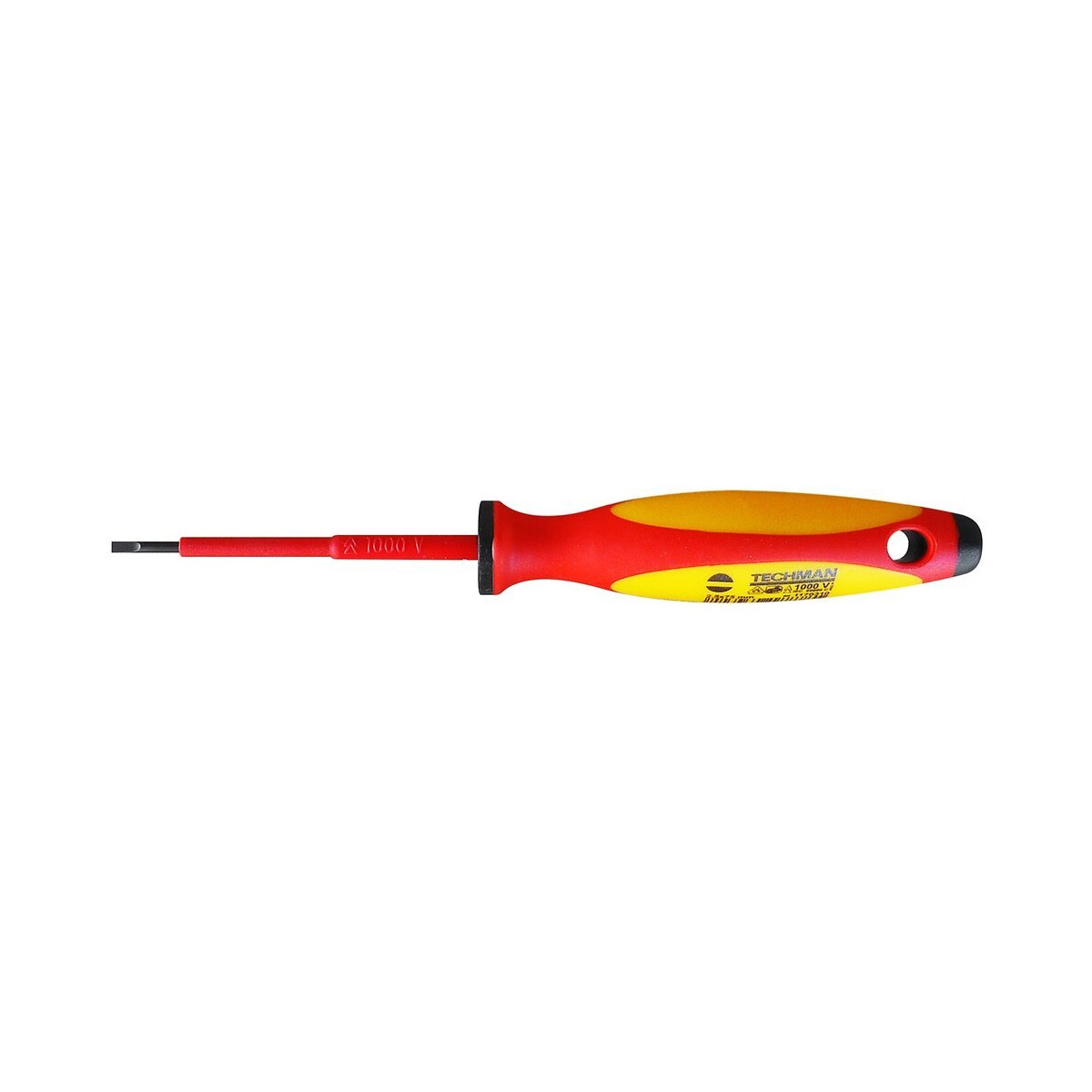 Lame 75 mm. Manche 103 x 23mm. Manche ergonomique en matériau doux antidérapant avec trou pratique pour le rangement. Forme triangulaire qui correspond parfaitement à l'angle de rotation de la main (120°), et qui empêche le tournevis de rouler lorsqu'il est posé. Lame acier inoxydable haute qualité, chromée mate. Pointe noire avec empreinte haute précision.