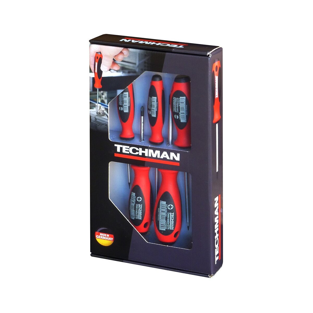 Composition: 1 x Tournevis plat électricien 3,0 x 75 mm 1 x Tournevis plat mécanicien 4,0 x 100 mm 1 x Tournevis plat mécanicien 5,5 x 125 mm 1 x Tournevis Pozidriv 1 x 80 mm 1 x Tournevis Pozidriv 2 x 100 mm Manche ergonomique en matértiau doux antidérapant avec trou pratique le rangement. Forme triangulaire qui correspond parfaitement à l'angle de rotation de la main (120°) et qui empêche le tournevis de rouler lorsqu'il est posé. Lame acier inoxydable de haute qualité, chromé mate. Pointe noire avec empreinte haute précision.