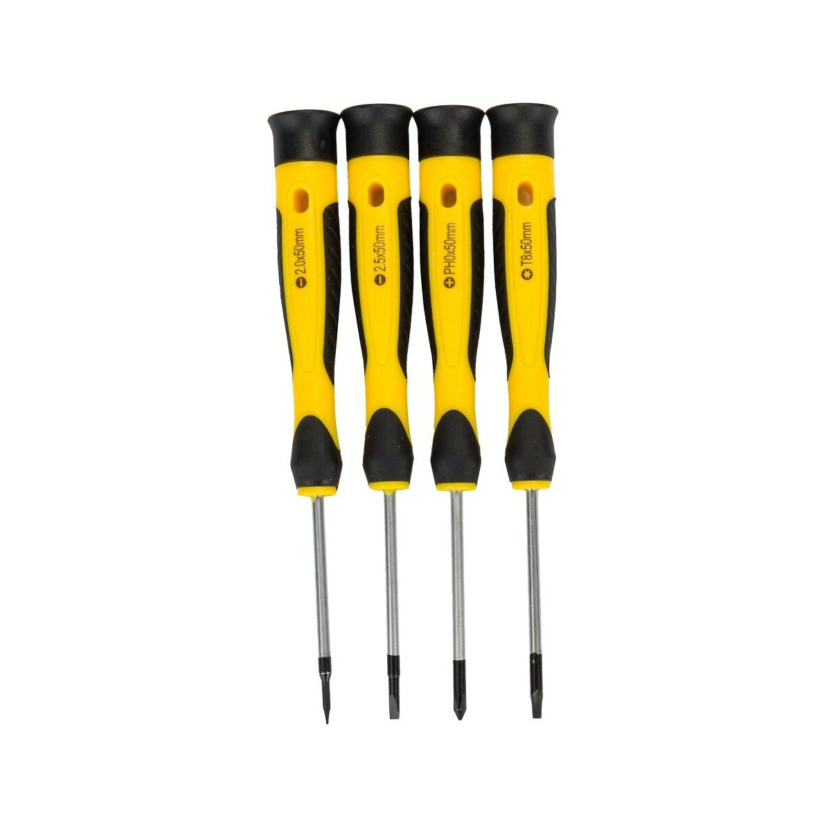 Jeu de tournevis essentiels 21 pièces. L'utilisation des embouts aimantés permet d'augmenter la précision et les possibilités de vissage dans les endroits difficiles d'accès, CARACTÉRISTIQUES TECHNIQUES: Tournevis traditionnels : 3 plats (3x75mm ; 5x75mm ; 6x100mm), 3 croix (PH0x75mm ; PH1x75mm ; PH2x100mm), Tournevis de précision : 2 plats (2x50mm ; 2,5x50mm), 1 croix (PH0x50mm), 1 TORX (T8x50mm), Bits Cr-V 20x25mm : 2 plats (4mm ; 5mm), 2 TORX (T10 ; T20), 2 CARRÉ (S1 ; S2), 4 croix (PH1 ; PH2 ; PZ1 ; PZ2), Tête aimantée, Manche ergonomique