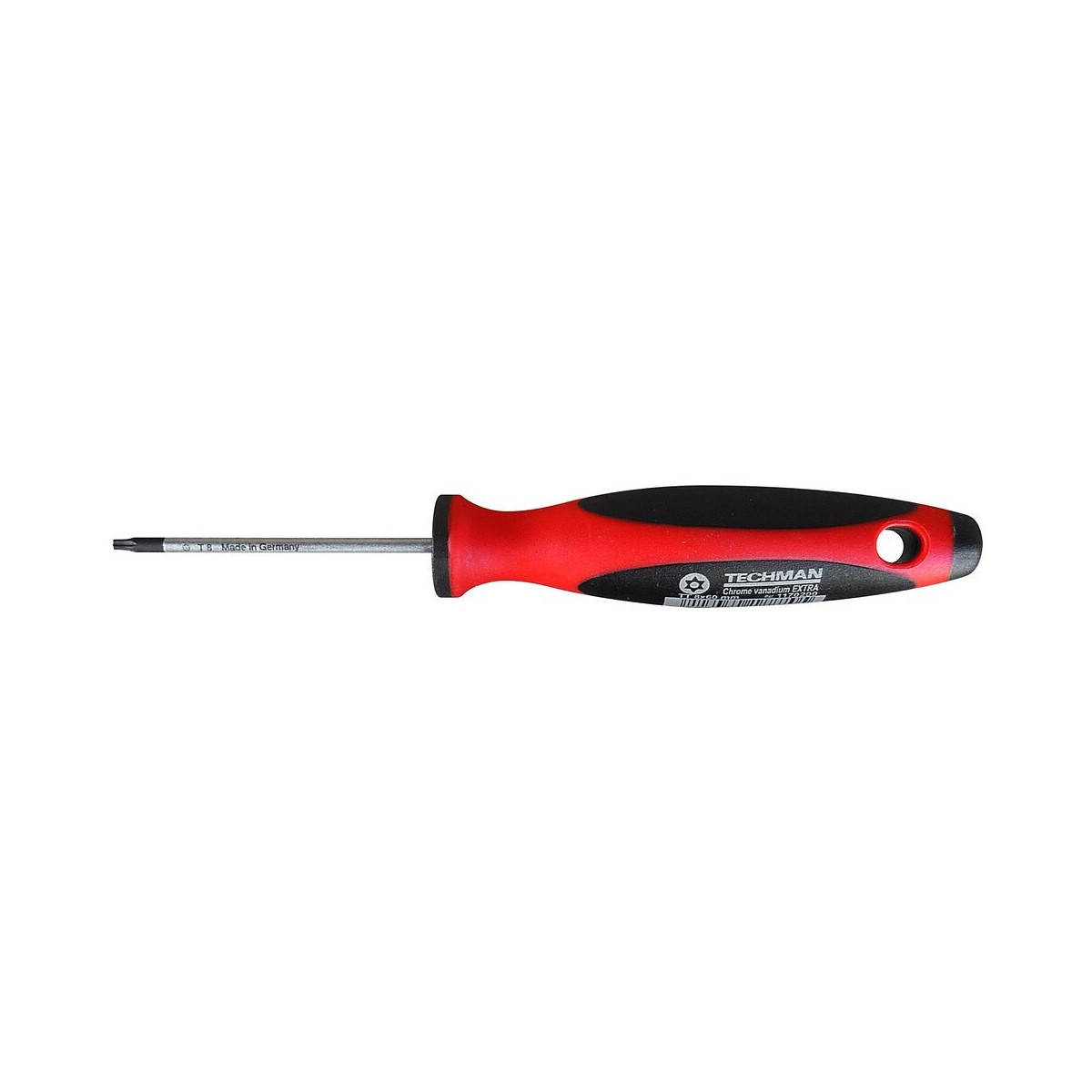 Lame 60mm. Manche 103 x 23 mm. Manche ergonomique en matériau doux antidérapant avec trou pratique pour le rangement. Forme triangulaire qui correspond parfaitement à l'angle de rotation de la main (120°), et qui empêche le tournevis de rouler lorsqu'il est posé. Lame acier inoxydable haute qualité, chromée mate. Pointe noire avec empreinte haute précision.