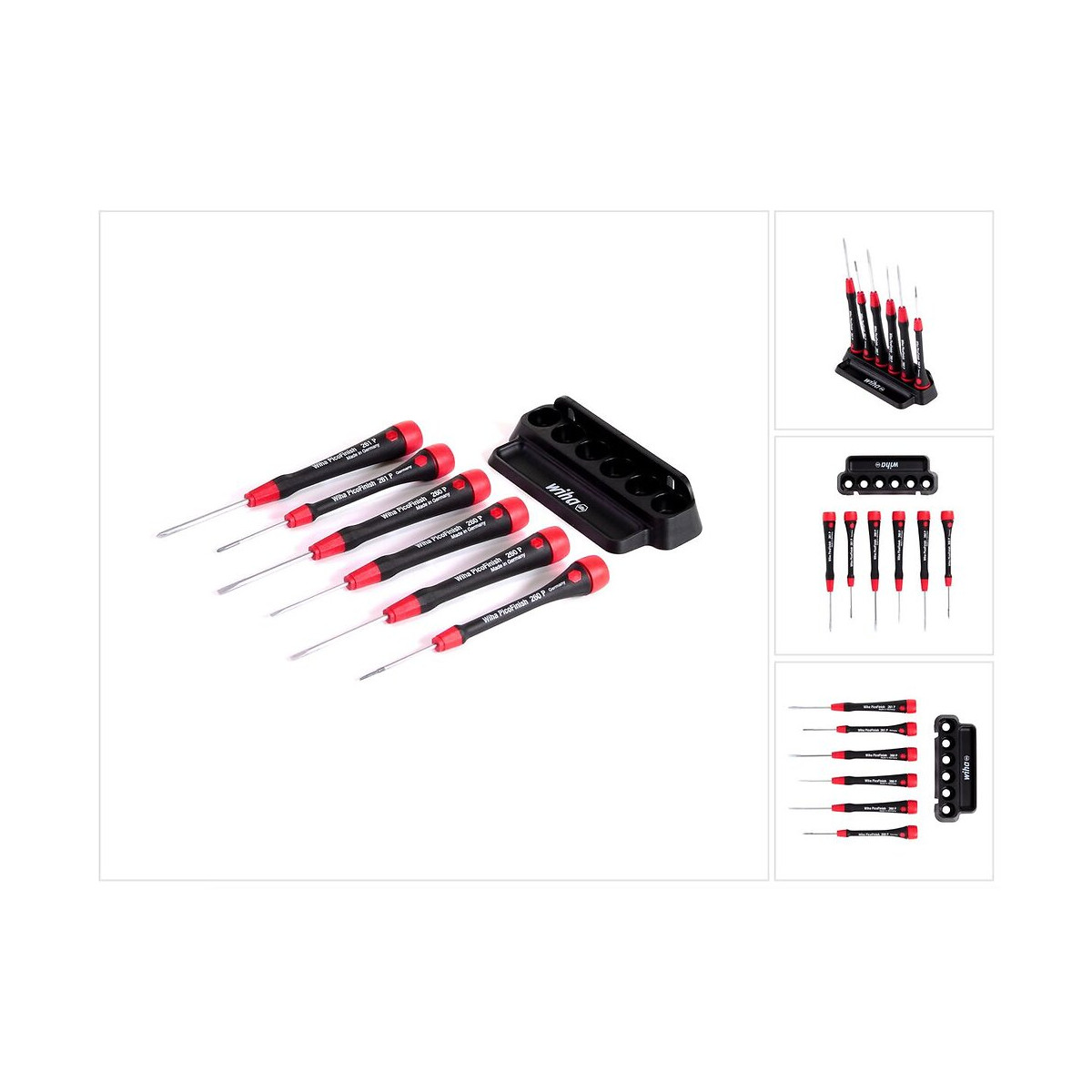 Contenu de la livraison: - 1x Tournevis plat 1,5 x 40 - 1x Tournevis plat 2.0 x 40 - 1x Tournevis 2,5 x 40 - 1x Tournevis 3.0 x 40 - 1x Tournevis Phillips-Recess PH 00 x 40 - 1x Tournevis Phillips-Recess PH 0 x 50 - 1x Support Description du produit: Les tournevis de précision Wiha ont une poignée multi-composants ergonomique et un capuchon rotatif avec un grand repose-doigt. La lame est en acier au chrome vanadium et au molybdène et est donc robuste. Grâce au support inclus dans la livraison, les tournevis sont rapidement à portée de main et rangés proprement. Les tournevis sont conçus pour les travaux les plus fins. Pico Finish est un nom pour un manche extra long et étroit, de sorte que même les travaux les plus délicats ne sont plus un problème. Spécifications techniques: Numéro du fabricant: 260PK6 Numéro: 6 pièces poignée ergonomique: oui Matériau: acier au chrome vanadium et au molybdène