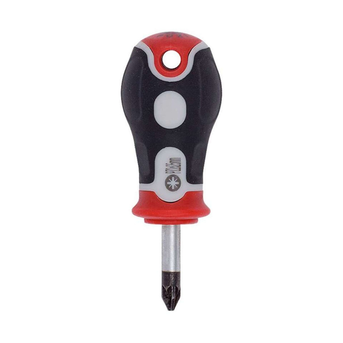 Description détaillée du produit Produit: tournevis Type: Stubby cruciforme Longueur: 85 mm Longueur barre: 25 mm Tête: pozidriv pz Taille de la tête: 2 Matériau: acier S2 Arbre finition satin Poignée ergonomique en matière synthétique Coloris: noir et gris Marque: Kreator