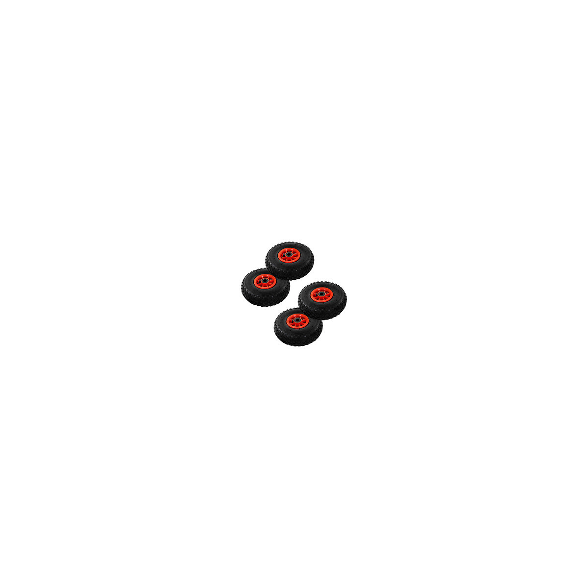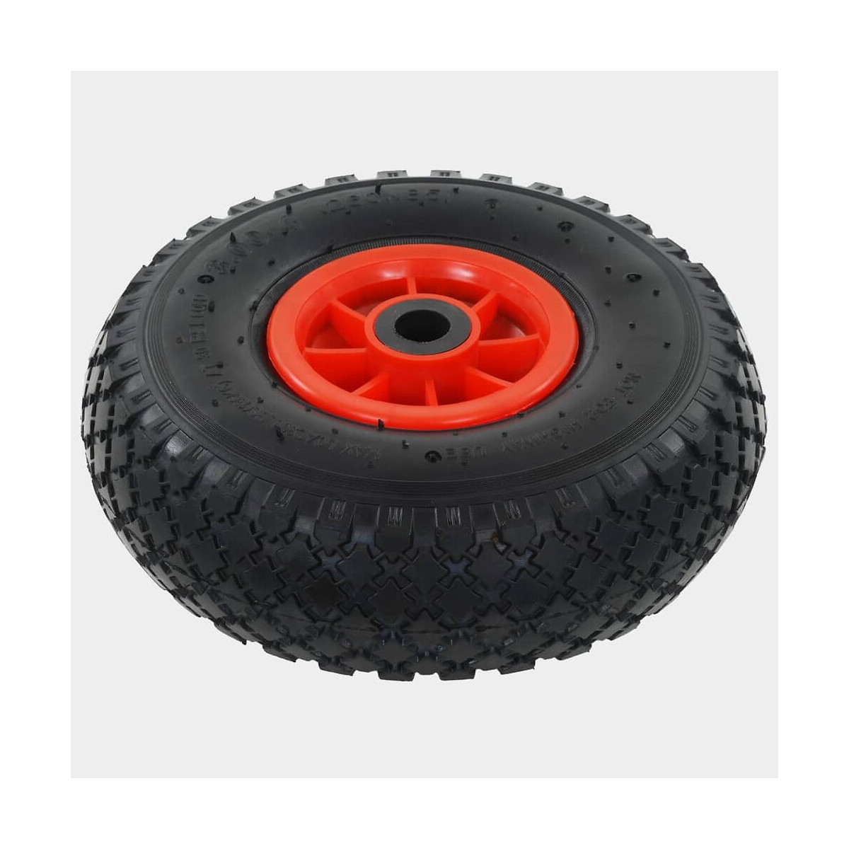 Ces roues de diable de rechange increvables sont idéales pour une utilisation intensive lorsque vous transportez des charges avec vos diables, chariots, brouettes, etc, même sur des terrains inégaux. Les pneus sont fabriqués en caoutchouc durable et résistant à l'abrasion, et présentent une conception de bande de roulement spéciale qui offre une adhérence accrue à grande vitesse. Les jantes sont en plastique robuste. Les roues de diable de rechange ont une taille universelle et peuvent être facilement installées sur vos diables, chariots, etc. La livraison inclut 4 roues. Couleur : noir et rouge Matériau : pneu en caoutchouc et jante en plastique Dimensions : 260 x 85 mm (Diamètre x l) Taille du pneu : 3.00-4 Diamètre du roulement à rouleaux : 20 mm Capacité de charge (chacune) : 100 kg Facile à installer La livraison inclut 4 roues Remarque : ne convient pas à un usage sur la route