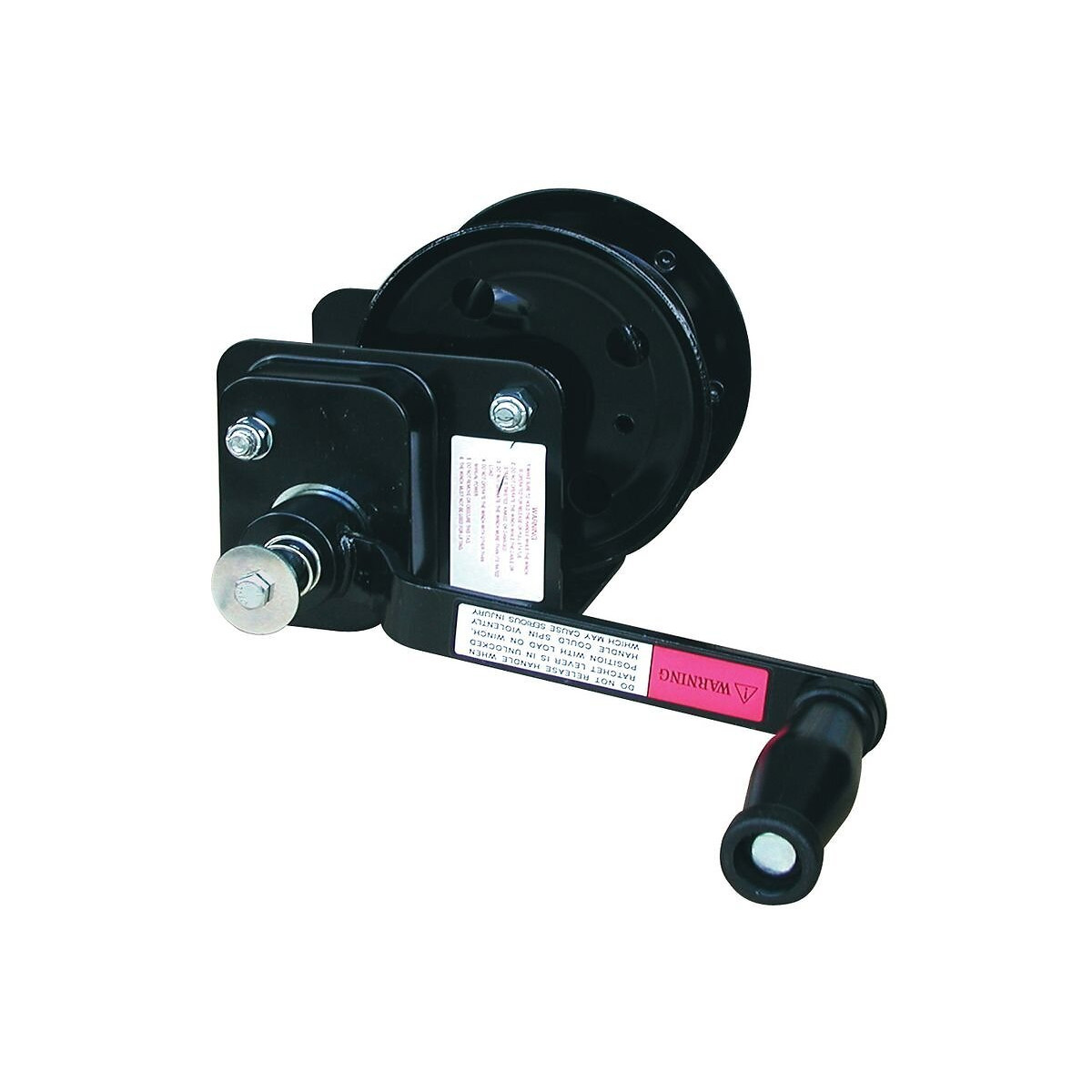 Treuil manuel auto-freine - Ø 5 mm x 10 m Treuil pour halage et levage. Capacité de levage : 500 kg en couche inférieure / 240 kg en couche supérieure. Livré sans câble. Conforme aux normes européennes. Ø 5 mm x 10 m 2900 / 750 kg 3,7 kg