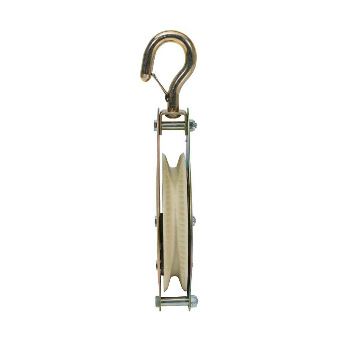Description détaillée du produit: - produit: poulie - marque: Werkapro - univers: quincaillerie - utilisation: arrimage - utilisation: pour corde de 20 à 30 mm de diamètre - matière: acier - caractéristique: poulie crantée - caractéristique: crochet rotatif - caractéristique: languette de sécurité