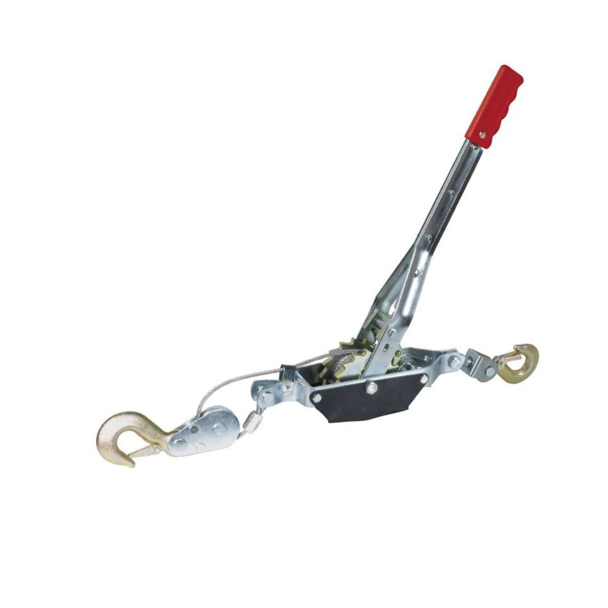 Treuil double cliquet avec câble acier Ø 5 mm. Outillage de traction. Puissance de traction jusqu'à 2 tonnes sans mouflage, idéal pour bateau, auto, quad etc... Longueur 2,20 m. Bras d'enroulement 1 position débrayage. Force de traction: Direct, max 3m: 2000 kgMouflage, max 1,5m: 4000 kgSpécifications techniques