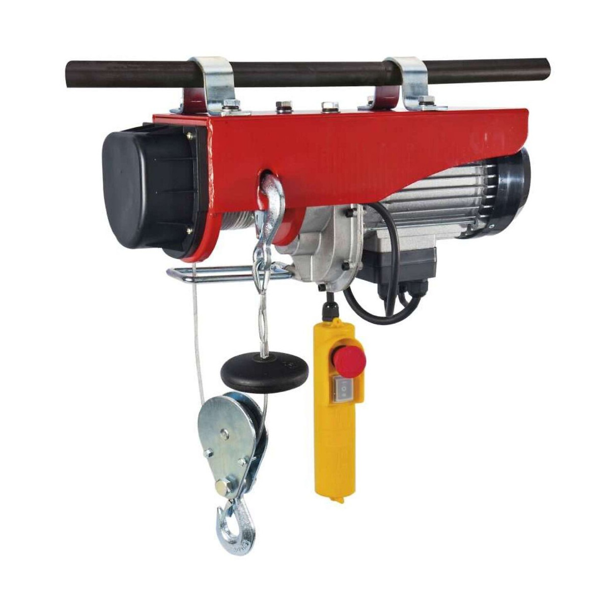 Palan électrique 750w 200-400kg avec poulie de mouflage et boitier de commande électrique 230 Volts. Livré avec colliers pour fixation IP44.Diamètre du câble: 3,8 mm.Moteur 750w 230 volts, 50Hz Monophasé.Spécifications techniques