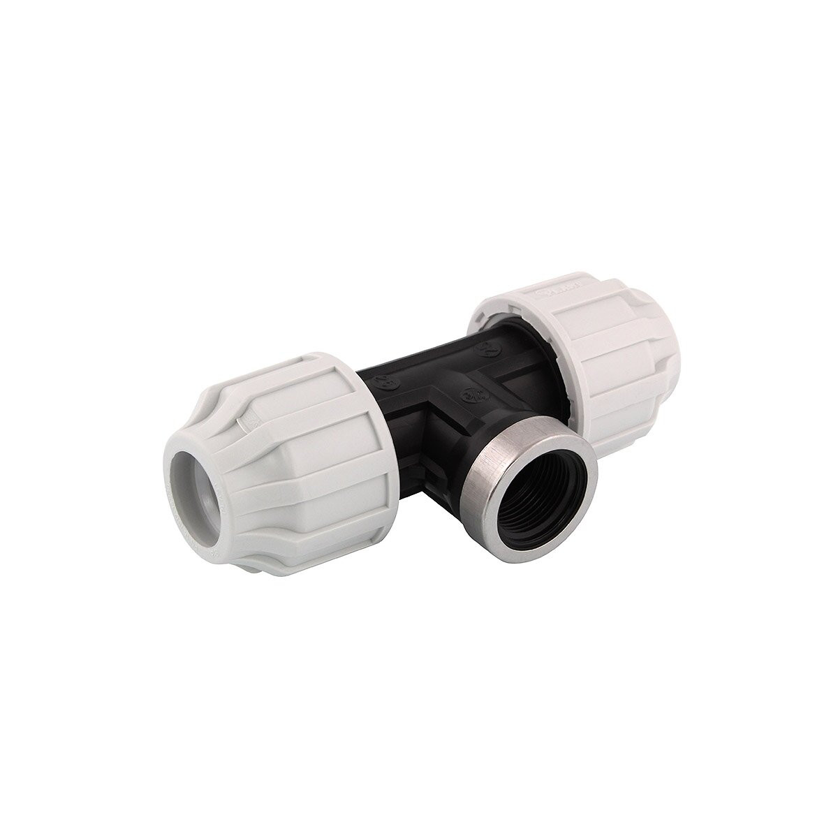 Caractéristiques : - Raccords compression en polypropylène pour tuyaux polyéthylène haute et basse densité. - Corps injecté en copolymères de polypropylène (PP-B) conformément aux prescriptions sanitaires internationales pour le transport de l'eau potable et des liquides alimentaires. - Bague d'agrafage en résine polyacétal (POM). - Joint torique en NBR. - Serrage extérieur sur tube polyéthylène haute et basse densité du diamètre 16 au diamètre 90. - Raccordement fileté ou taraudé de 3/8" à 4" pas du gaz. - Pression maximum de service : PN 16 bars du Ø 16 au Ø 63 - PN 10 bars du Ø 75 au Ø 90. - Température maximum d'exercice : 80°C. - Attestation de Conformité Sanitaire du Laboratoire de Nancy. - Conforme aux principales normes en vigueur : ISO 3507-DIN 8072-DIN 8074-UNI 7611-UNI 7990-UNI ISO 228/1-BS 21-ISO 228. Descriptif technique : - Pression nominale : PN16. - Matière : Polypropylène. - Diamètre : 25x3/4". - Angle : 90°. - Attestation de conformité sanitaire. - Raccordement : taraudé. - Marque : Interplast.Spécifications techniques
