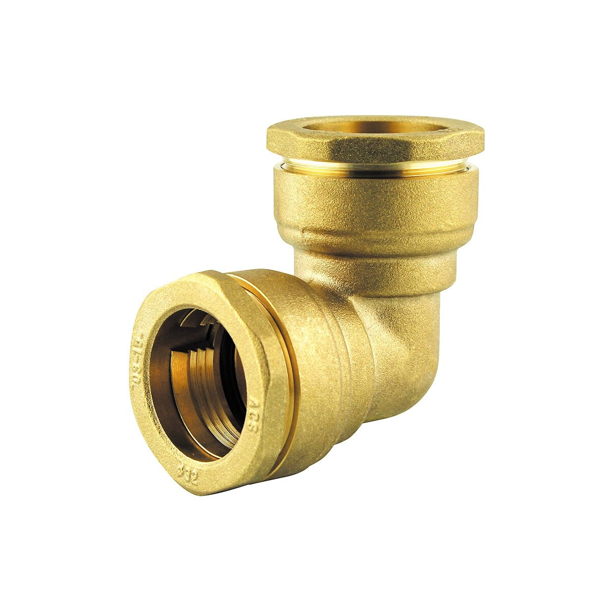 Caractéristiques : - Utilisés pour l'adduction d'eau potable et l'irrigation. - Certification ACS, norme DIN 8076 et filetage ISO228/1. - Corps en laiton matricé CW617N, bague crantée en laiton H62, joint torique EPDM. - Conditions d'utilisation : températures comprises entre 0°C et 50°C / pression PN20. Descriptif technique : - Pression nominale : PN20. - Matière : laiton. - Diamètre : 32. - Angle : 90°. - Attestation de conformité sanitaire. - Marque : Interplast.Spécifications techniques