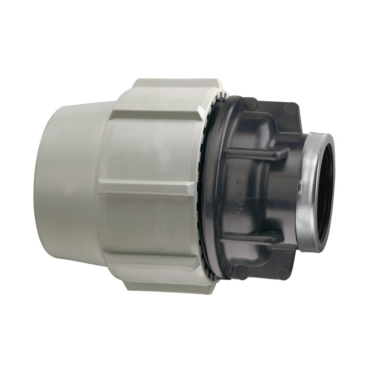 Raccord à compression fileté femelle pour tuyau en polyéthylène et PVC normés. Raccord mécanique utilisé pour l'assemblage de tubes en pression. Corps et écrou en polypropylène et copolymère de haute qualité. Dimensions : Diamètre 32/26 mm x 34 mm. Bague de crampage en acétal (POM). Joint torique en caoutchouc nitrile (NBR).Pression maximale de service : PN 16 bars à 20°C. Température de service : jusqu'à 40°C. Avantages : - Attestation de Conformité Sanitaire. - Excellente résistance à l'arrachement. - Montage rapide et facile. - Parfaite résistance à la corrosion : tenir compte pour les liquides corrosifs de la nature du joint torique (caoutchouc nitrile). Remarques importantes : application eau chaude exclue.Instructions d'installation pour les raccords à compression : pour les raccords 16 mm à 63 mm, dévisser l'écrou jusqu'au dernier filet. Enfoncer le tube en tournant dans le raccord (utilisation du lubrifiant et du cône à chanfreiner). Visser et serrer l'écrou fermement (clé Plasson).Pour les raccords 75 mm à 110 mm, dévisser l'écrou de 3 à 4 tours. Enfoncer le tube jusqu'à la butée intérieure du raccord (utilisation du lubrifiant et du cône à chanfreiner). Visser l'écrou au maximum et serrer fermement (clé Plasson).