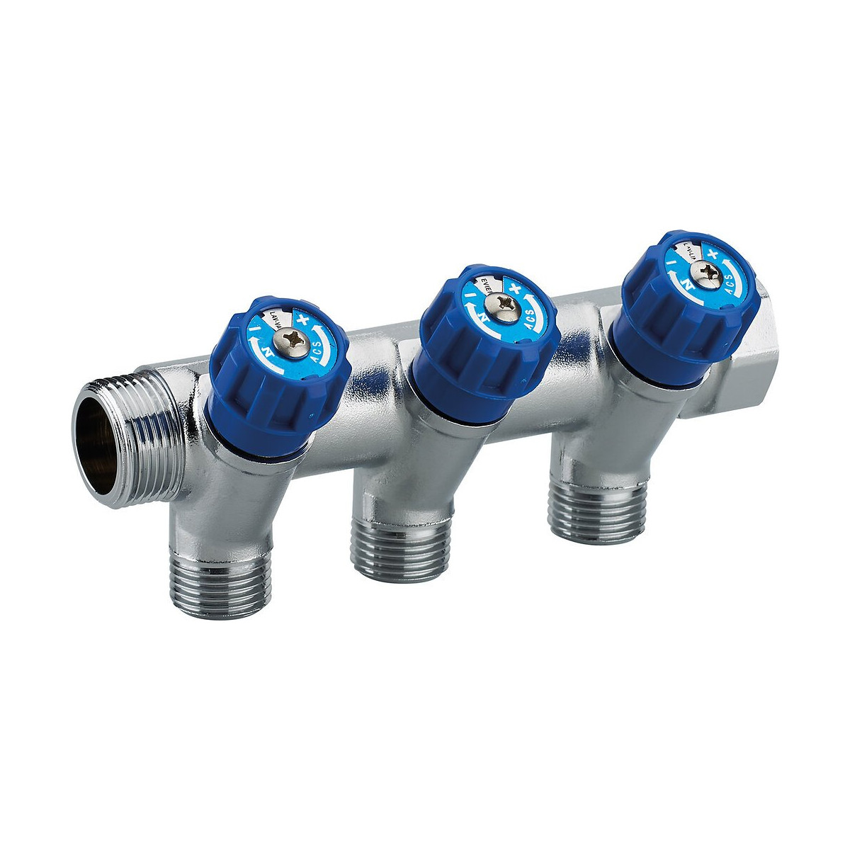 Collecteur robinetterie intégrée bleue MF20x27 - 3 départs mâle 15x21.Spécifications techniques
