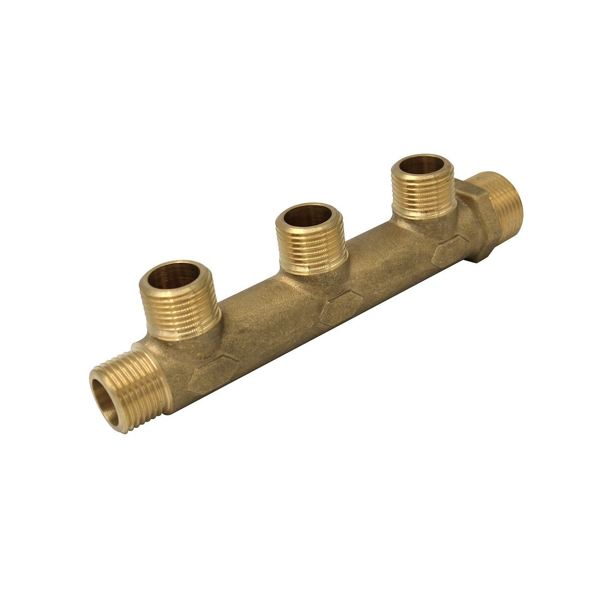 Nourrice en laiton arrivée mâle 20x27. 4 sorties mâles 15x21 pour effectuer une distribution sur quatre appareils sanitaire ou chauffage. Les liaisons peuvent être réalisées par flexible ou PER.Spécifications techniques