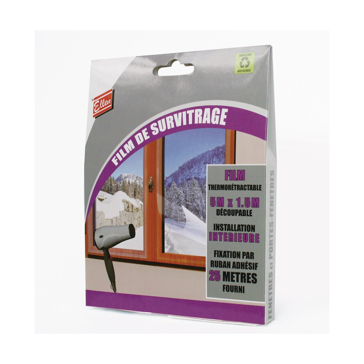 Film thermo rétractable de survitrage pour usage intérieur - Isole contre le froid, prévient de la condensation - Fixation par adhésif - Double face fourni