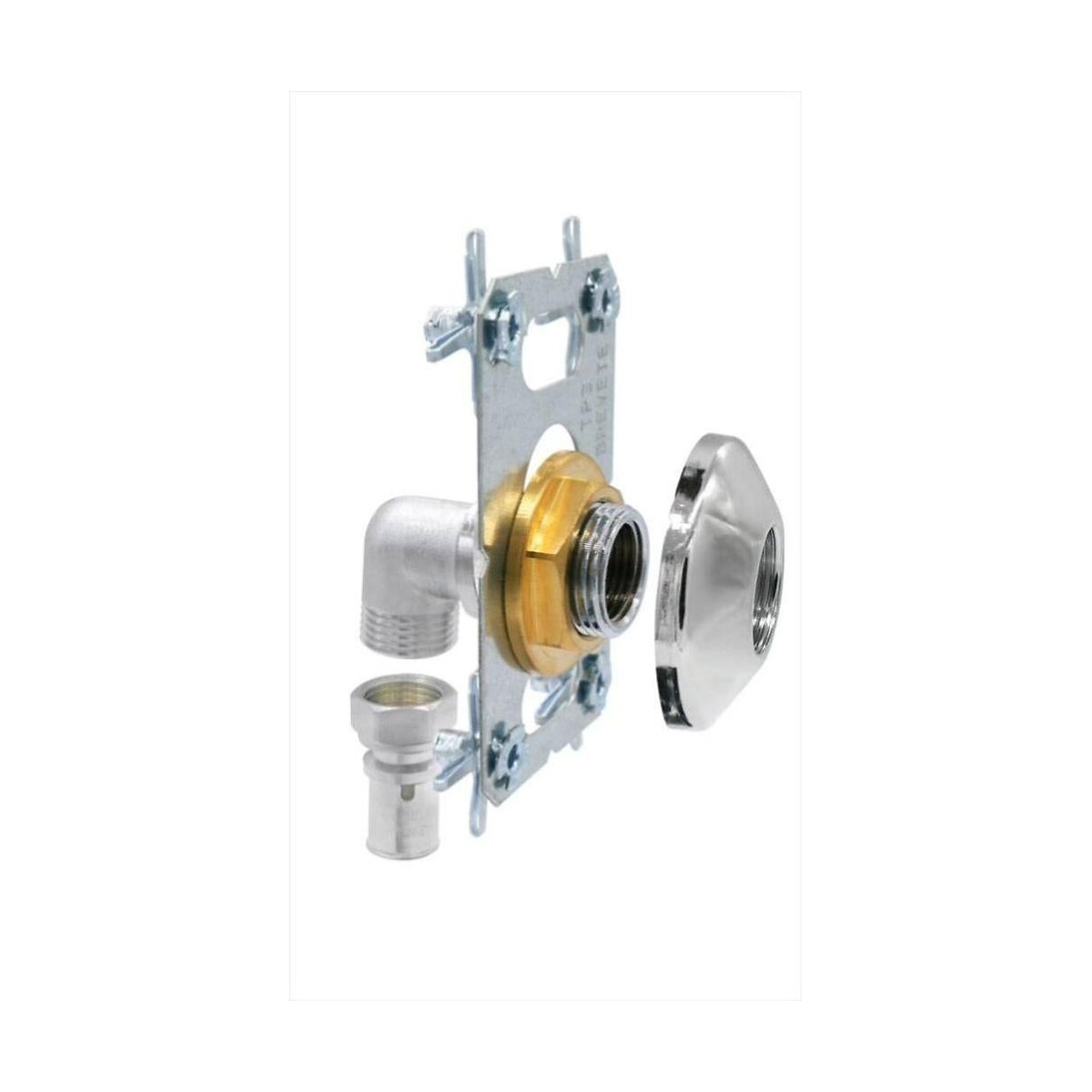 Système breveté garantissant fiabilité, rapidité et facilité de pose / Sortie femelle 1/2 (15x21) pour le raccordement direct d'un robinet de machine à laver / Platine métallique anti-arrachement / Réglage du raccord en profondeur grâce au système d'encoches Cette platine de raccordement Easy Fix permet d'aménager facilement une sortie d'alimentation en eau pour un robinet de machine à laver. L'installation est encastrée mais reste visitable à tout moment après la pose du revêtement mural. La sortie dispose d'un double filetage : Extérieur M20x27 (3/4) pour visser le contre-écrou / Intérieur F15x21 (1/2) pour raccorder la robinetterie. La rosace chromée fournie avec le kit permet de parfaire la finition une fois la pose du revêtement mural effectuée. Filetage de l'embout (en mm): 15 x 21 Finition du produit: Chromé Norme ou label: ACS Pour alimenter: Lave-linge Matière du raccord: Laiton Type d'embout de sortie V3: M 20 x 27 Type d'embout d'entrée V3: D.16 Matière du tube de destination: Pour tube en multicouche Raccordement de l'embout: Mâle Diamètre du tube d'alimentation (en mm): Entre 16 et 19 mm Produit emballé : hauteur (en cm): 18.2 Produit emballé : largeur (en cm): 10.4 Produit emballé : profondeur (en cm): 8.2 Produit emballé : poids (en kg): 0.426 Indication du geste de tri (triman): Nos produits et emballages peuvent faire l'objet d'une consigne de tri. Pour en savoir plus : www.quefairedemesdechets.frSpécifications techniques