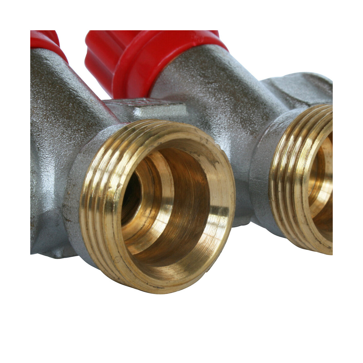 Collecteur sanitaire en laiton nickelé. Ce collecteur permet une alimentation sanitaire, dans une habitation, à partir d'un point central (distribution en pieuvre). Entrée et sortie du collecteur en Male-Femelle 20/27 - système auto-étanche avec un alignement parfait, 2 dérivations équipées de vanne d'arrêt à clapet, en Male 3/4 Ek - Entraxe des dérivations : 40 mm