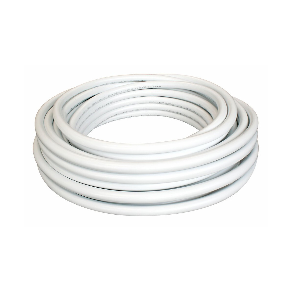 Tube Multicouche Ø16 en couronne de 25m Ce tube permet une finition esthétique de vos chantiers grâce à la couleur banche. Il est simple à installer car il se cintre à la main et garde sa forme. C'est un excellent compromis entre le tube cuivre et le tube PER. Les raccordements se font sans soudure, il se dilate peu. Il possède une barrière anti-oxygène grâce à son âme métallique.