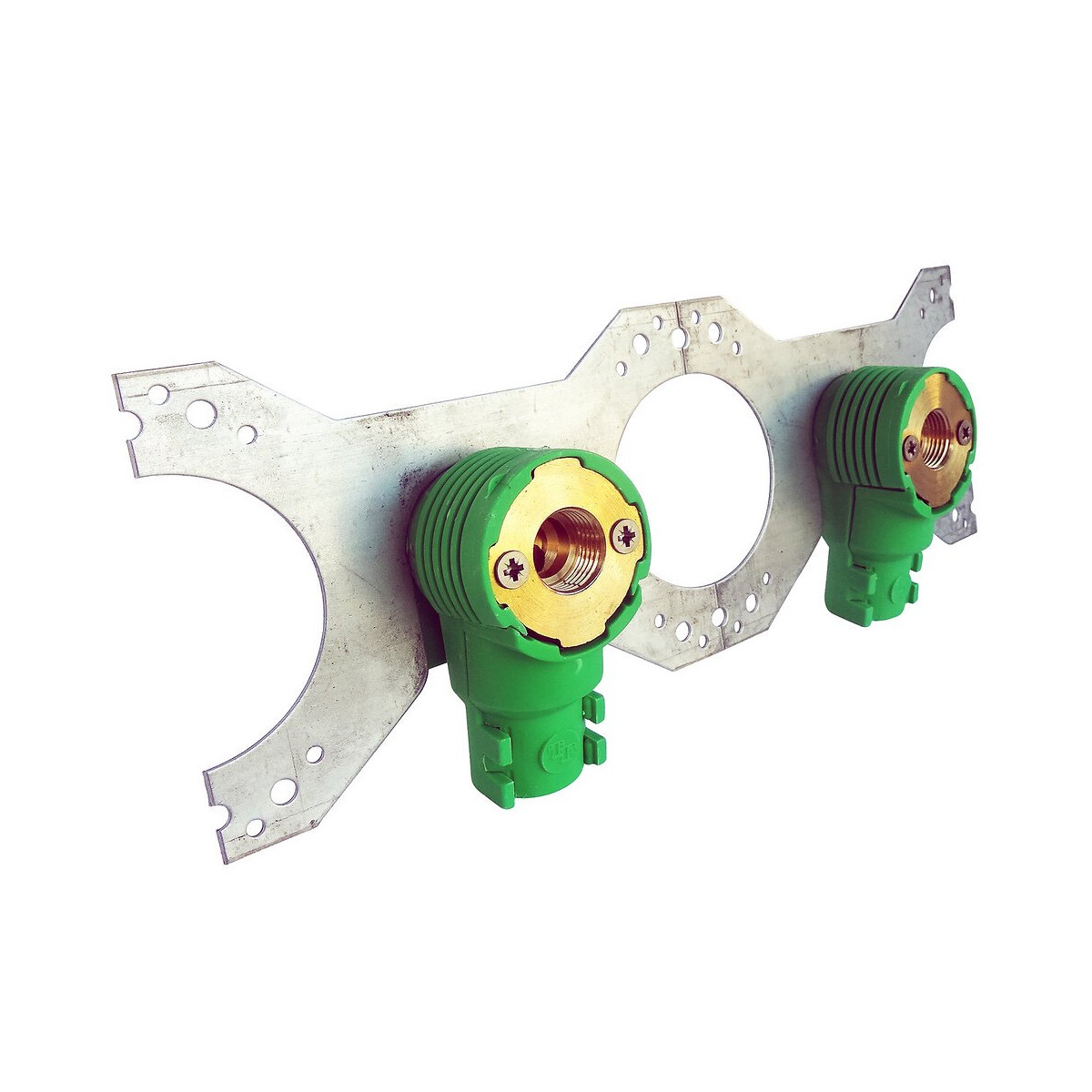 Ce kit complet de fixation pour boitiers d'encastrement contient tous les éléments nécessaires à l'installation de 2 boitiers d'alimentation en eau pour tube PER de raccord 16mm, avec une platine en acier inox, entraxe 153mm pour cloison.